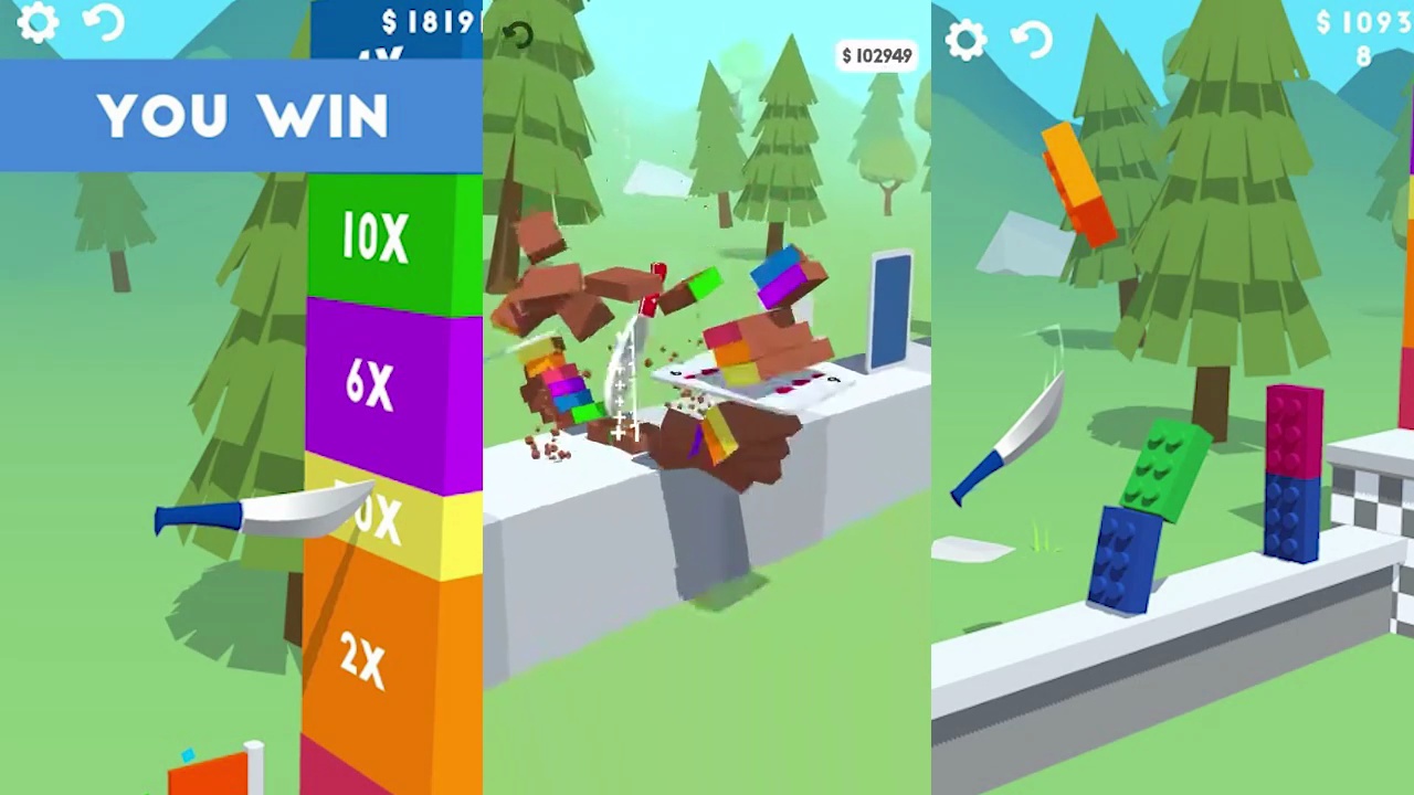 点击以翻转刀并以最有趣的方式切出惊人的障碍!