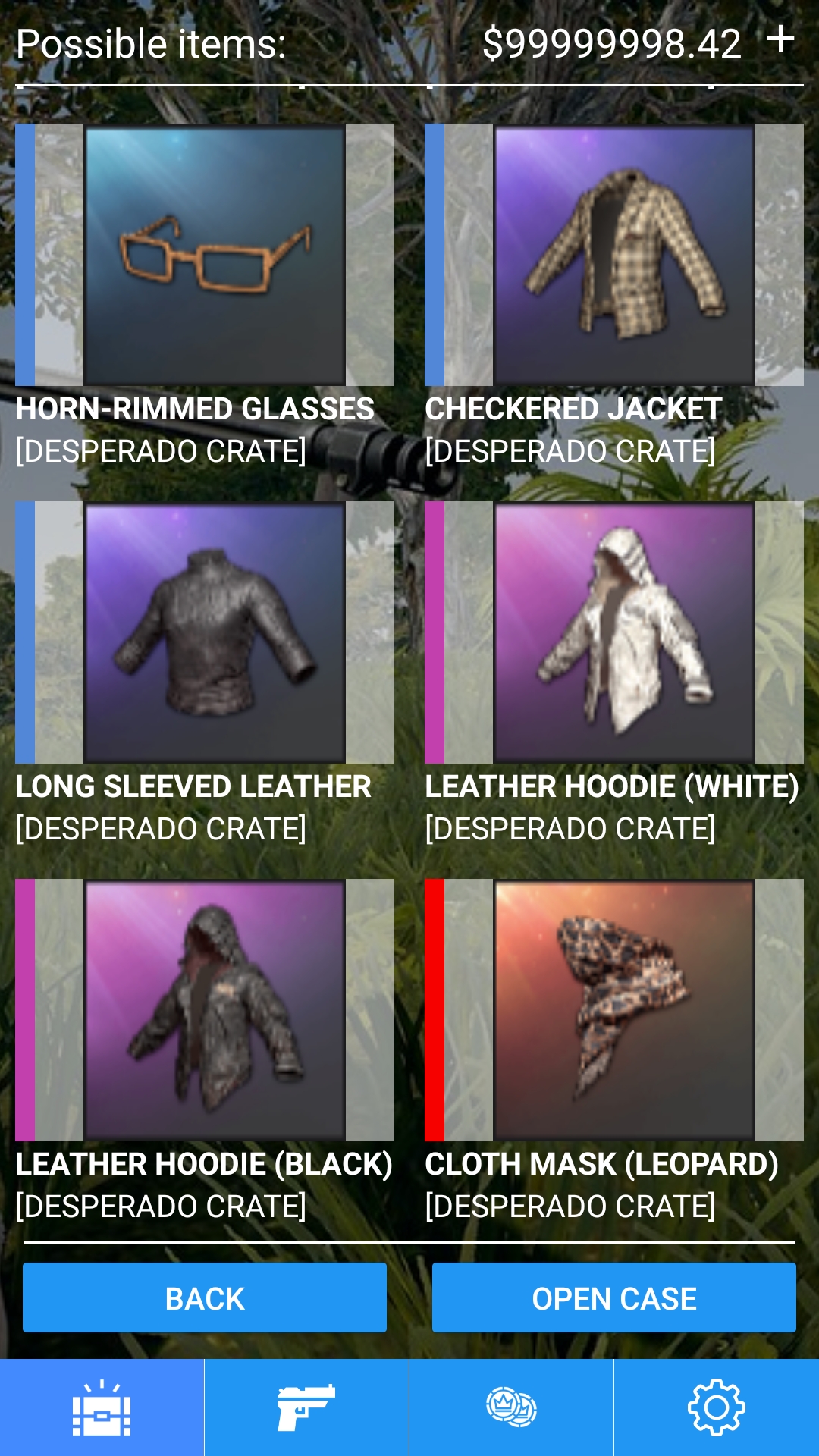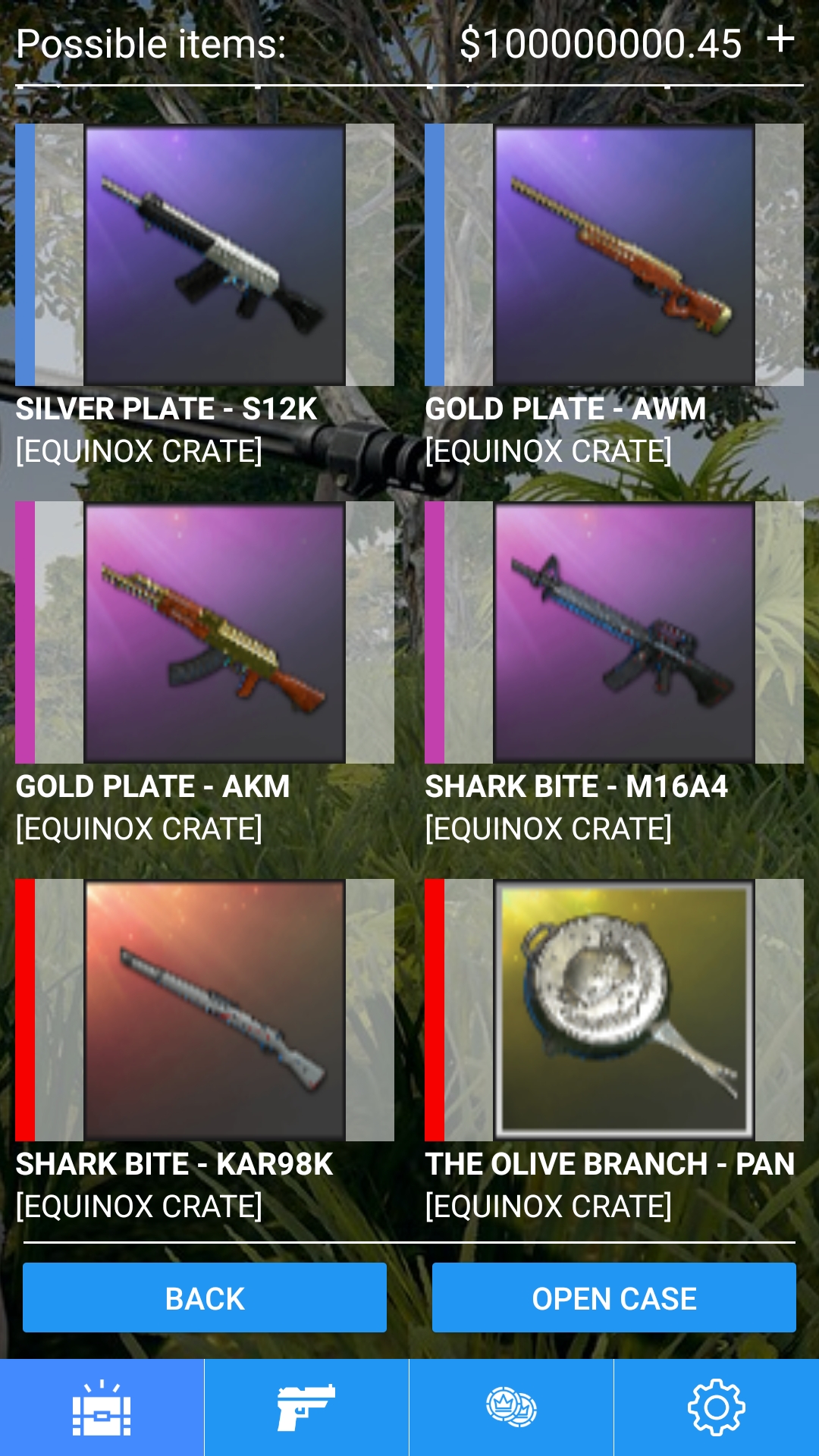 游戏采用的是平面动画,使用的图片和官方图片没有差别。能够让玩家体验到在绝地求生游戏里开箱的快感,这里所有游戏里能开的东西在这里全部都可以,应有尽有的道具,各种隐藏道具武器,稀有武器就在这里等着你,让你可以在这里疯狂的开箱,不管玩家什么时候开,都能在这里开出好东西。