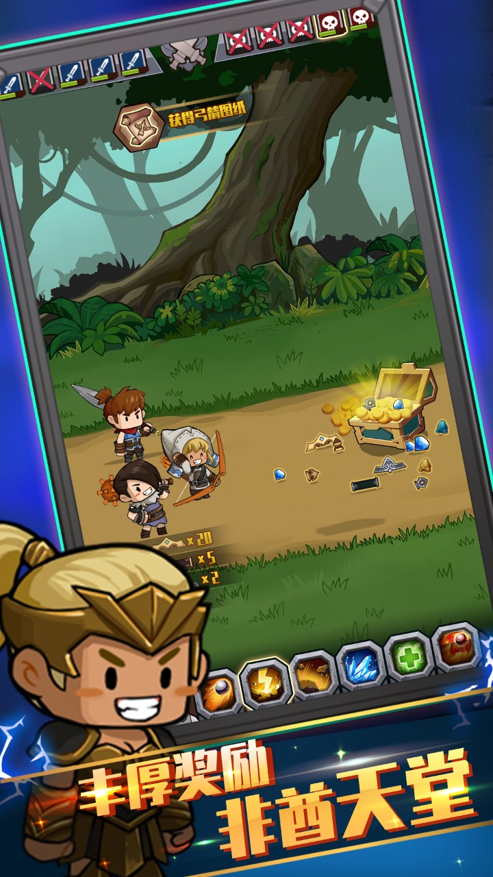 《最强武器召唤》是一款圆你神装梦的休闲RPG游戏 只要你的手艺好,收集足够的图纸,就可以自己亲手打造出神装!把邪恶的怪物统统踩在脚下! 打怪,收集原材料和图纸,打造武器,就这么简单! 但是别忘了,勇猛冲锋的同时,策略上合理的配装,五行相克的运筹帷幄才是你致胜的关键!