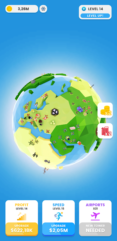 建立一个闲置的空中帝国,管理机场和飞机,成为飞机大亨!发展您的业务,赚钱并管理您的空中控制帝国。成为一个闲置的点击器大亨和亿万富翁!