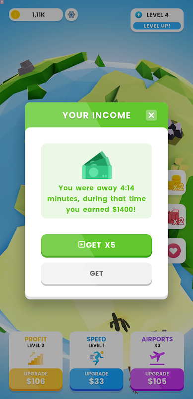 让新飞机为您环绕地球飞行并建立您的闲置机场帝国,收集闲置黄金并成为飞机大亨。您可以获得许多不同的飞机和塔楼,赚取现金并成为空中大亨。