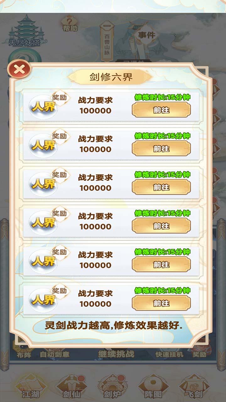 1、增加《剑修六界》功能,可通常过大量修为和妖核