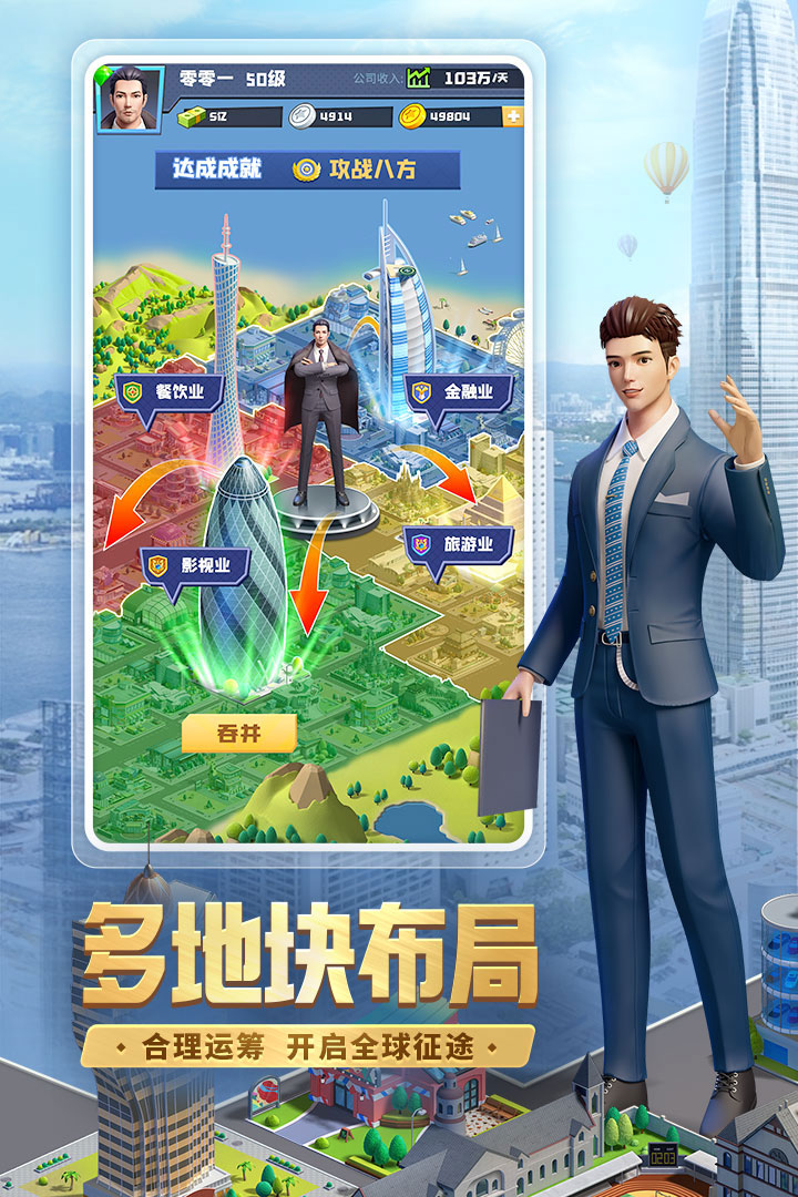 《明日大亨》是一款全新的沙盘式开放世界商战游戏,可通过经营公司,用多种多样的方式赚取利润,在尔虞我诈的商场上运用智慧谋略建立商业帝国,最终成为拥有亿万资产的商业大亨。