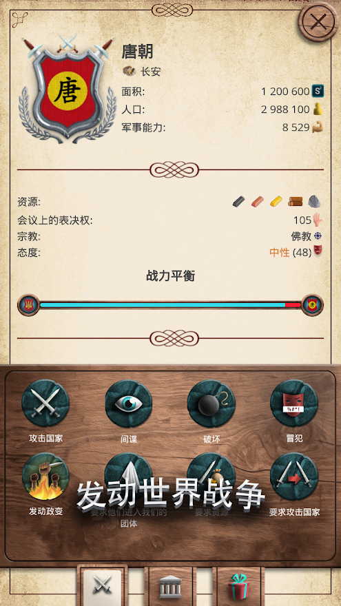 有远见的独裁者是国家政策成功的基础。积极开展国际活动,签订互不侵犯条约,重视国家间表决。请记住,外交和深思熟虑的政策往往是比战争更有效的联盟。