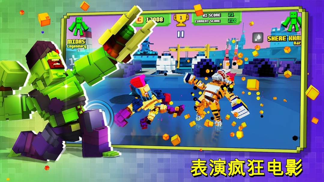 在这场无穷无尽的粉碎像素大冒险中扮演King Kong、《铁甲钢拳》中的史诗传奇Atom、Zeus和《奇幻森林》中的英雄角色。避开数不尽的障碍,发现独特英雄能力,收集稀有角色,赢得无数连胜,成为史上最伟大的回廊冠军!