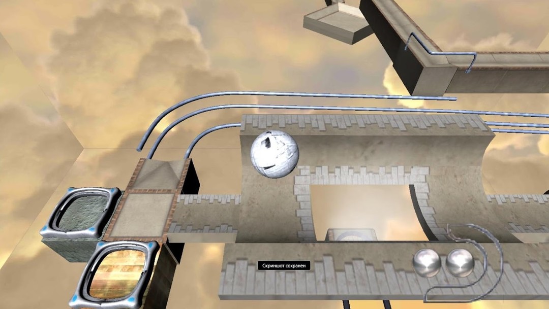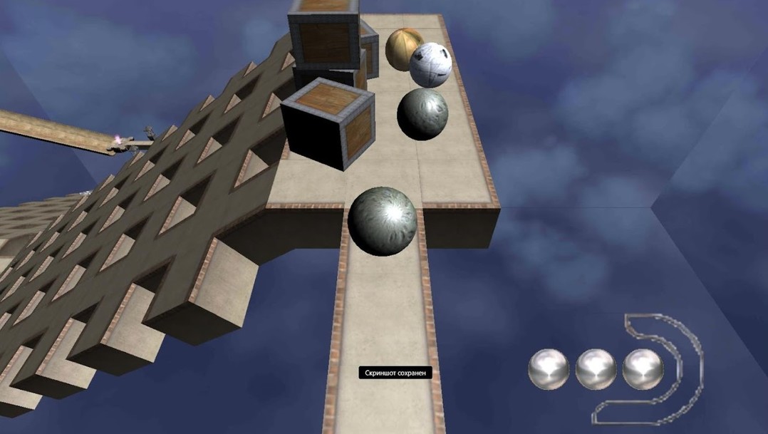 球在比赛中的一个特点是能够改变其材料和物理特性。一共有三种材料——木头、石头、纸。要更改材料,玩家必须将球放在变压器上。每个变压器负责一种特定的材料。