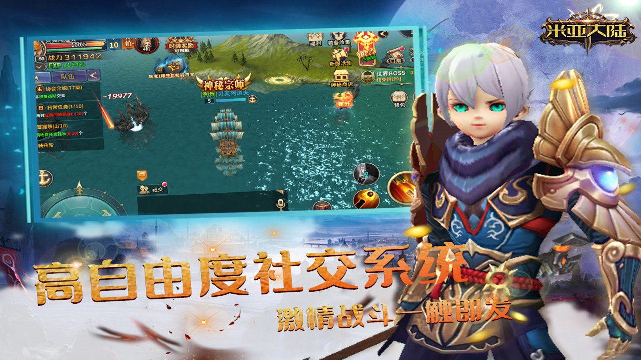 《米亚大陆》是一款三职业的MMO游戏,双剑的攻守兼备,巨斧的力量象征,隐身在黑暗中的拳刃,玩家在其中扮演角色进行冒险历程,一路过关斩将。各种奇幻场景,酷炫技能,经典海战,争夺海洋霸主之席,激爽变身技能,让你酣畅淋漓的战斗。更有多样游戏玩法,包括复仇之战、黑暗之门等特色副本,还可与其他玩家同台竞技。精美的设计、爽快的打击感,超高自由度的世界,等你来探索!