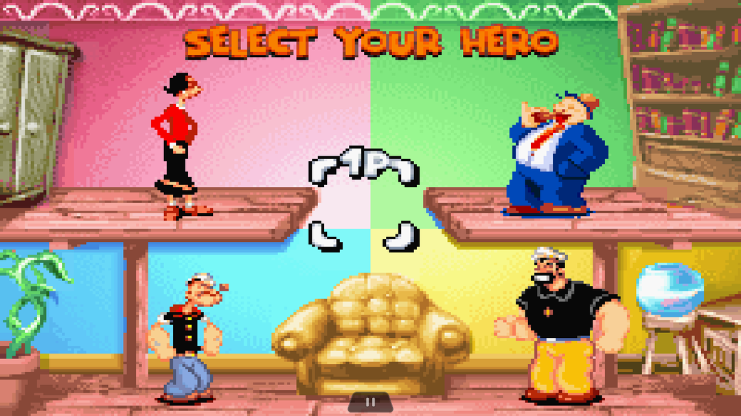 玩家要从大力水手、奥莉芙、布鲁托和维皮中选择一位。