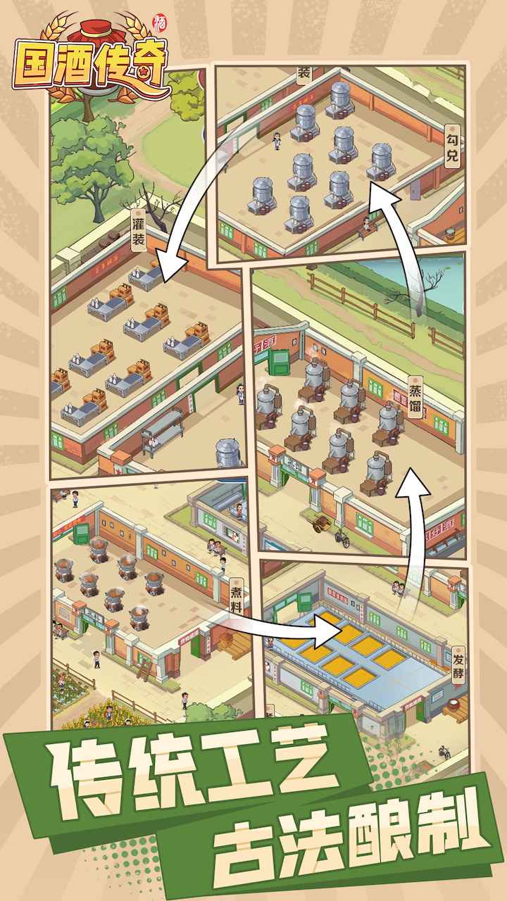 一键种植,选好作物无需操作,勤劳农夫帮你收获。轻松酿造,天南地北各色白酒,酱香清香等你来造。参加展会,货物装车推广国酒,糖酒大会任你施展。招贤纳士,种植酿酒她全都会,提升技术助你成名。