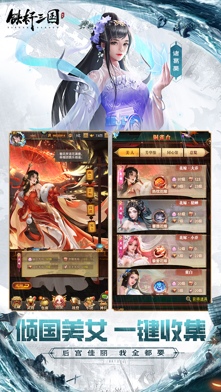 《铁杆三国》是一款三国题材放置挂机手游,欧气召唤,美人相伴,让你随时随地竞技对战,驰骋沙场,沉浸式梦回三国当王者!