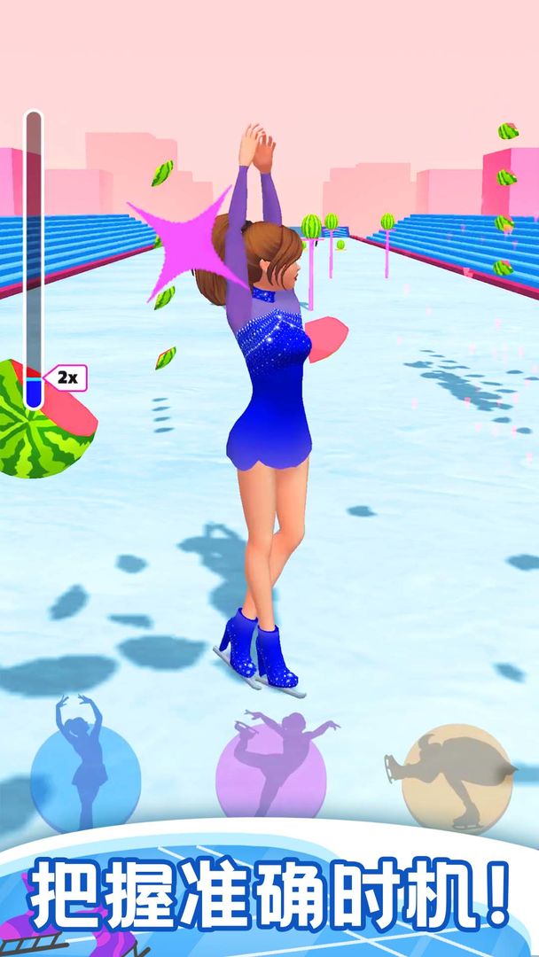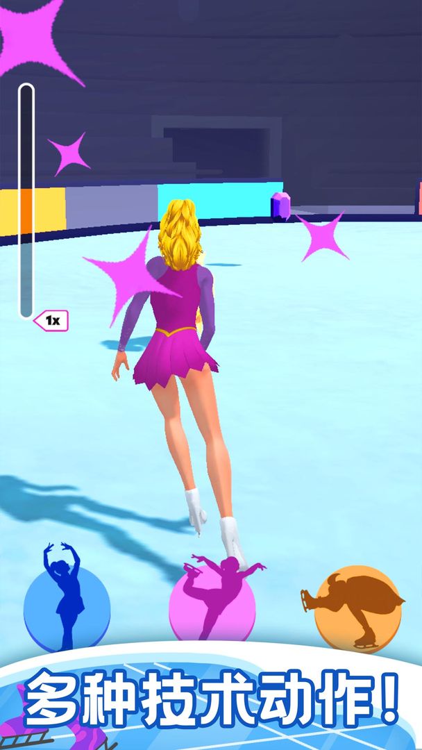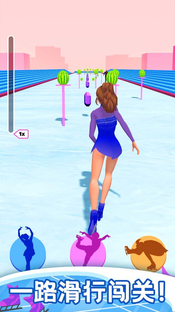 2.玩法有趣,休闲益智。将花样滑冰的动作结合到跑酷游戏中,给玩家带来新奇有趣的体验,同时玩法易学又考验反应能力,让玩家乐趣无穷。