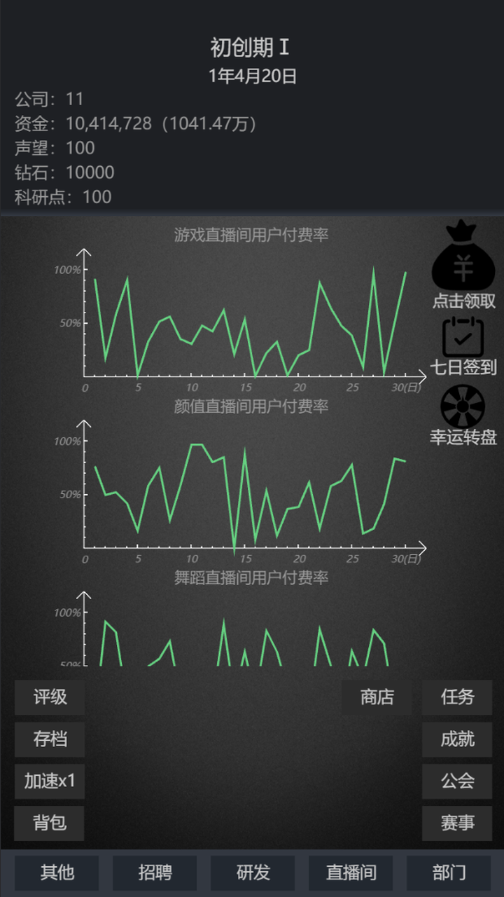 游戏中你将扮演一位公司老板,需要制定各种策略,模拟真实的直播公司管理~