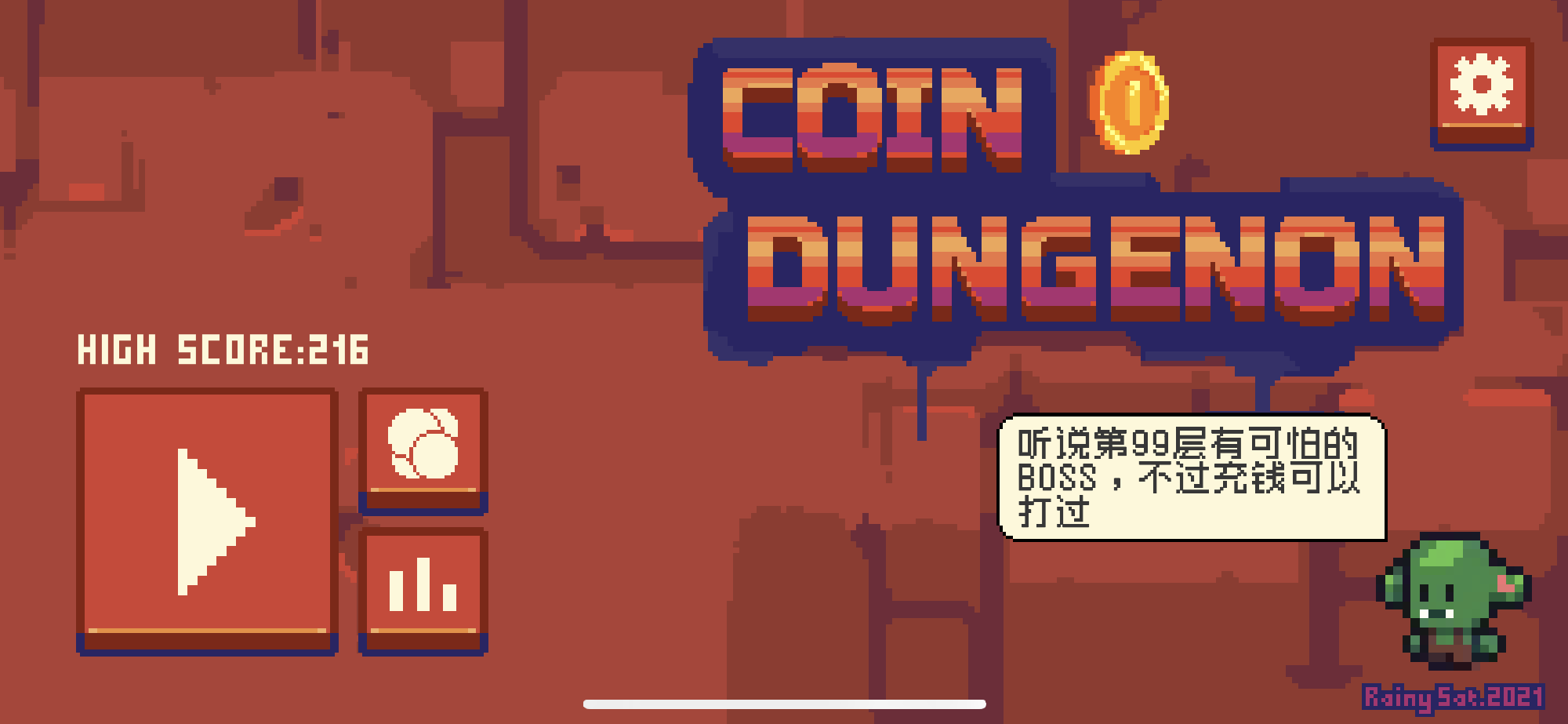 极简roguelike!随机地图!多种多样的怪物!你的金币既是血量也是子弹,用金币子弹随意改变地形意想不到的地图,意想不到的怪物多少层是你的极限?来挑战吧!