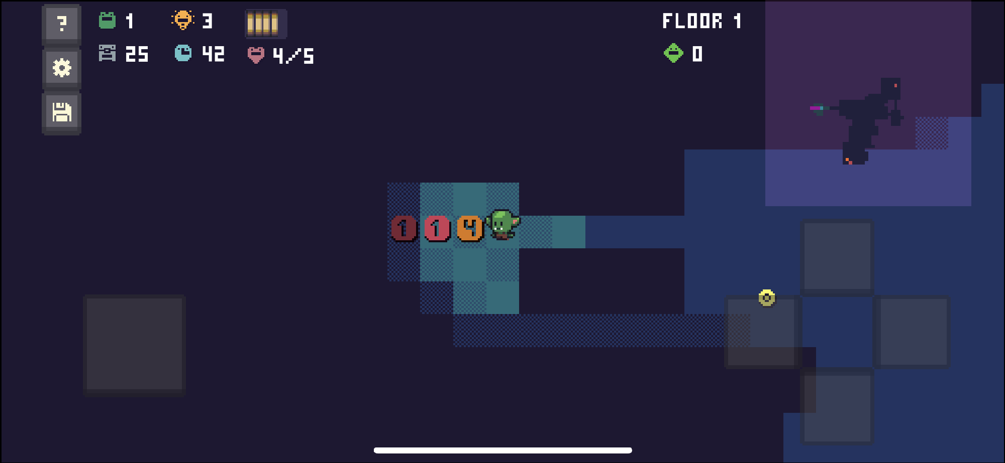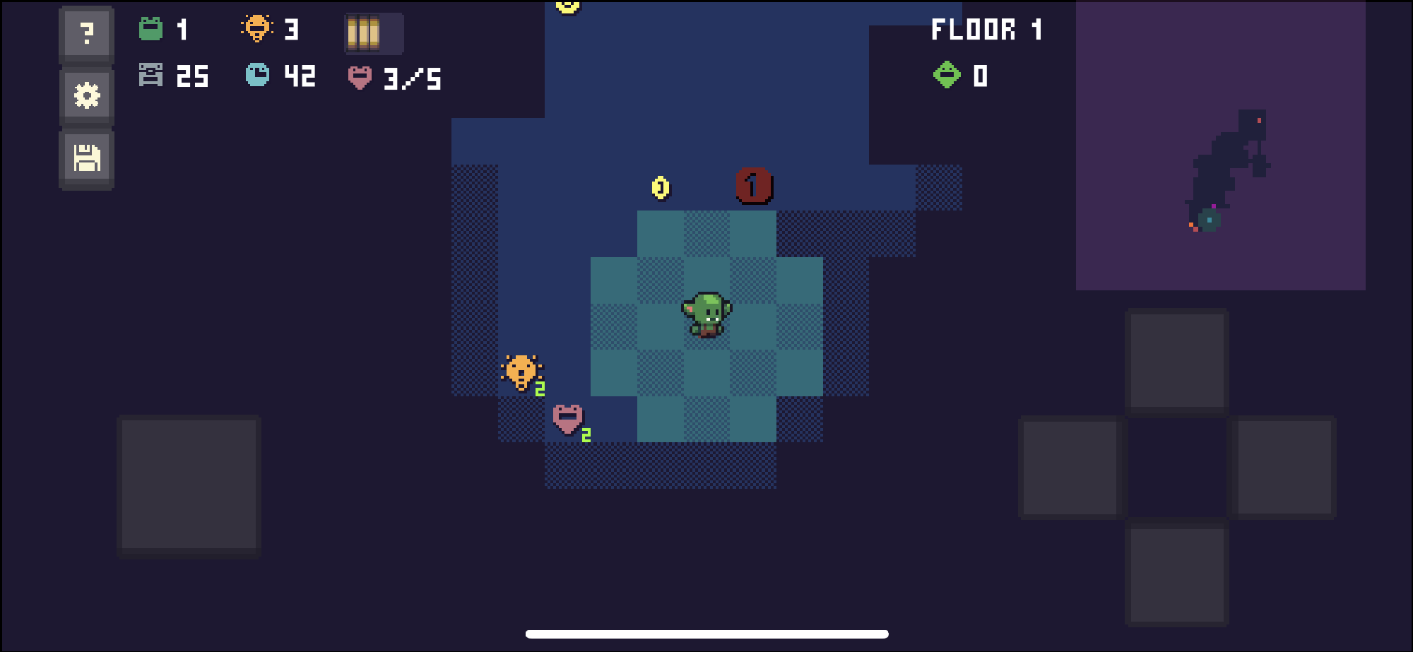 ·上下左右移动·按住攻击键+上下左右发射金币·你的金币既是血量也是子弹·有数字显示的是怪物,怪物身上的数字既是血量也是攻击力·怪物抖动则下一步会走动或者攻击·地面上的图标是商店,向商店发射足够的金币进行购买,显示的数字是需要的金币数量·墙壁也可以用金币打碎形成新的可行走区域·游戏分数与宝石、探索层数、杀怪数量有关