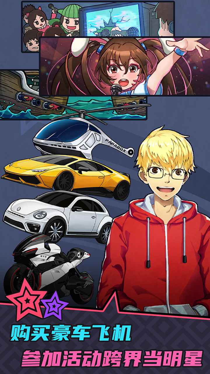 购买豪车、飞机,参加综艺、嘉年华等活动赚取丰富奖励!