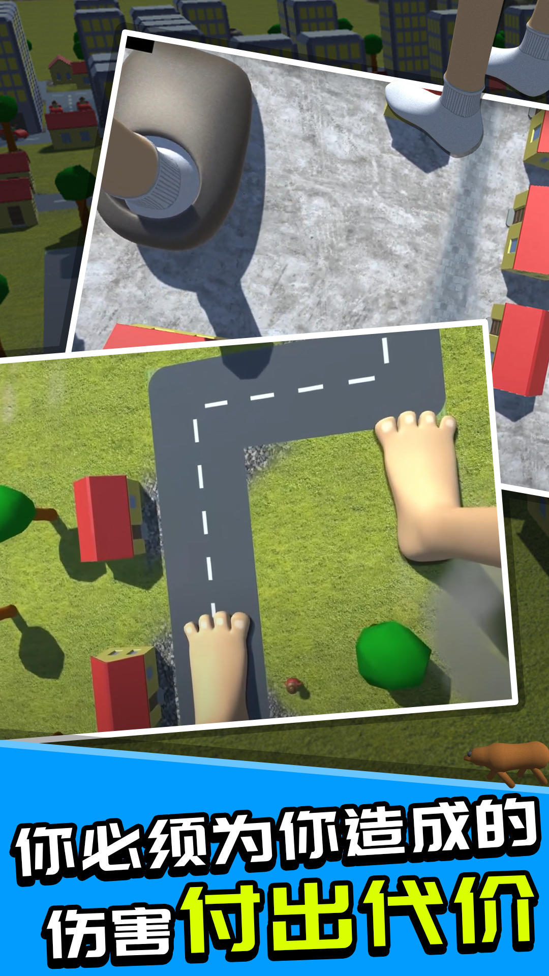 巨人模拟器是一款脑洞奇大荒诞无稽的搞怪模拟类游戏,我们操作的是一位巨人,但是又不是整个巨人身体,而是只有下半身的巨人双脚,通过我们的眼睛来俯视观看地面,十分的有趣,你爹目标就是破坏一切可以破坏的东西,尽情的释放你的压力吧。