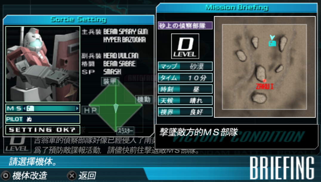 2005年9月发售的PSP动作游戏《机动战士高达:战术对决》广受好评,近期Bandai即将推出其续作《机动战士高达:大混战》。