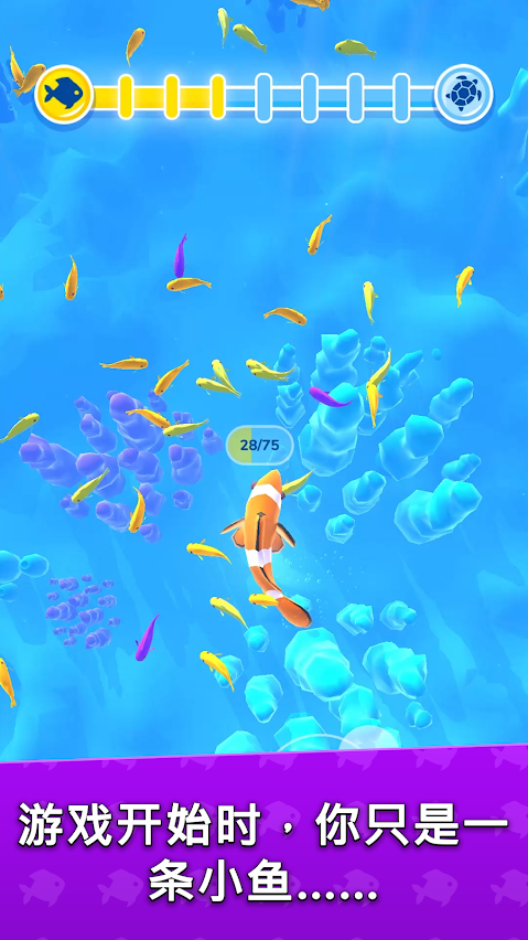 这是属于你的进化之旅:在广阔无垠的古生代海洋里度过整个地质年代,从一条毫不起眼的小海鱼发育成刚猛绝伦的嗜血鲨鱼,然后再变成一只乌龟,努力爬出自己的龟壳,以蜥蜴的美丽身姿爬上干燥的大地。