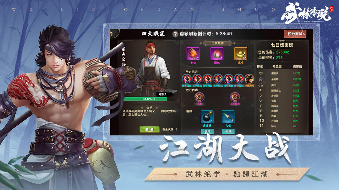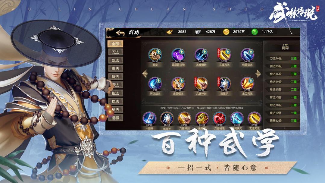 没有固定套路,只有策略搭配。见招拆招的对决,除了武学较量,更是策略博弈的过程。拳、掌、腿、刀、剑、枪、暗器,7大类武学百种招式,满足你对大侠的所有幻想。