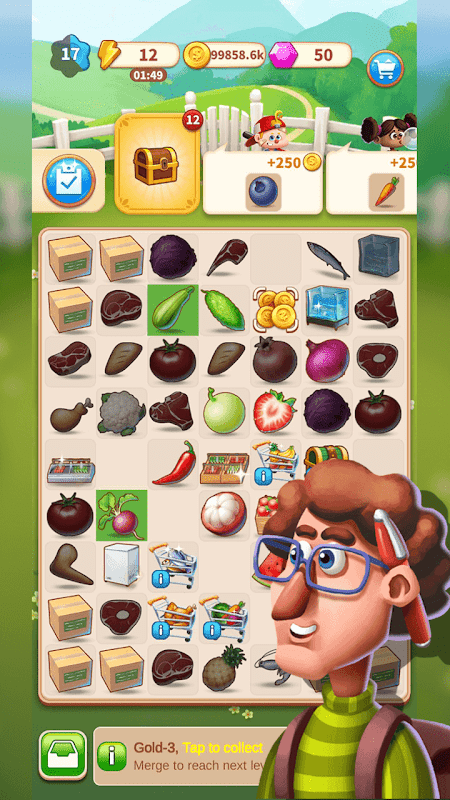 小镇大厨:梦幻合成,是一款轻松有趣的益智游戏,您可以在装饰餐厅并合成各种食材元素。就像在农场里闲逛一样,在这个有趣的合并游戏中,您可以随处看到蔬菜和水果,农作物。只需轻按、拖动并合并它们即可创造价值!