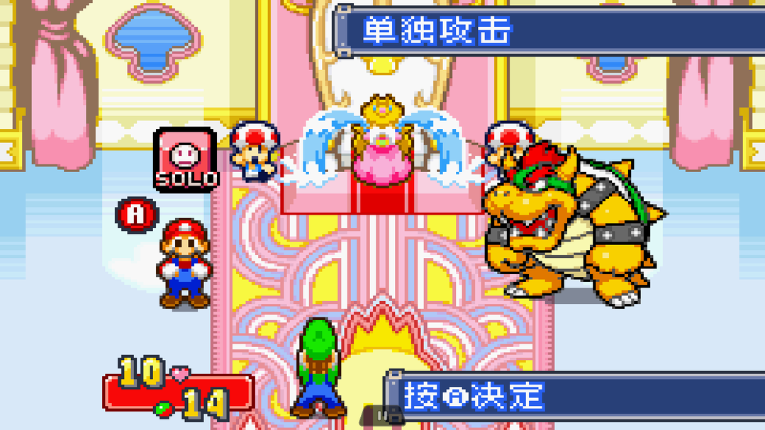 马里奥与路易RPG的第一作,发售在GBA平台,故事是在蘑菇王国与国外豆子王国建交,没想到被魔女陷害,偷走了碧奇公主的声音,使她无法说话,马里奥和路易受命蘑菇大臣的任务,夺回碧奇公主的声音。