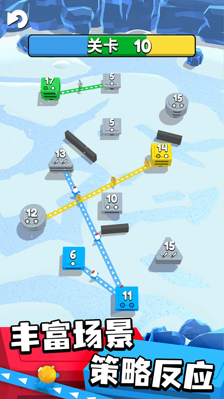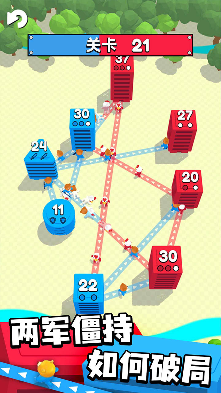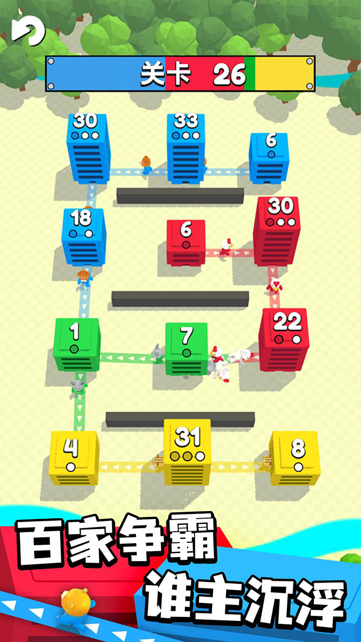 城市争夺战是一款休闲策略游戏,玩家需要通过自己已经占领的领地进行出兵,对相邻的大厦进行进攻并占领,占领的大厦越多,主动性越高,你能否再这样一场策略游戏中攻城拔寨拿下军神的名号呢?游戏中具有丰富的关卡内容,各类的障碍与道具,提升了游戏的策略性与选择性,玩家可以通过自己的判断规划处最为合理的一条出兵路线,用智慧来领先其他选手!目标只有一个,就是占领所有据点,祝你好运参赛者!
