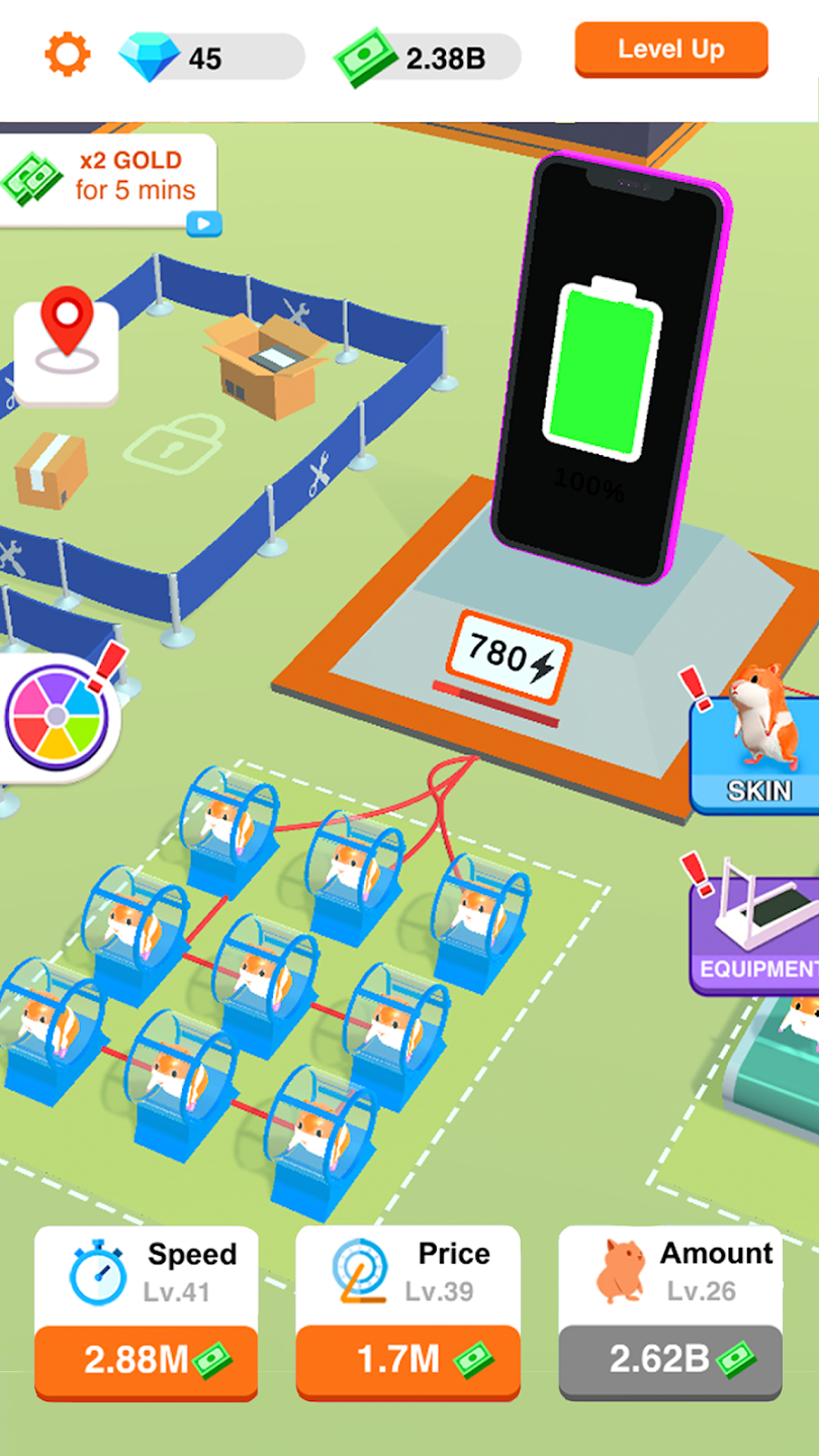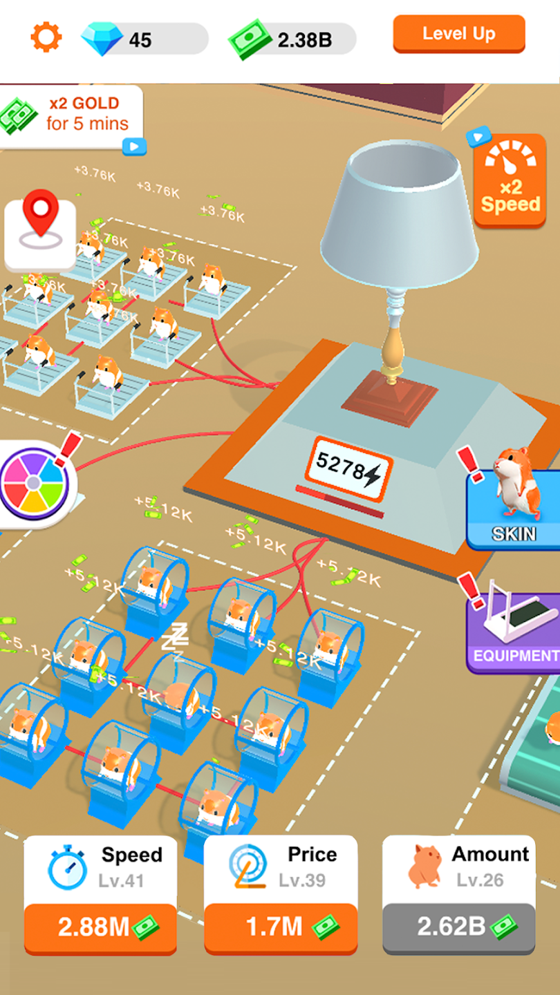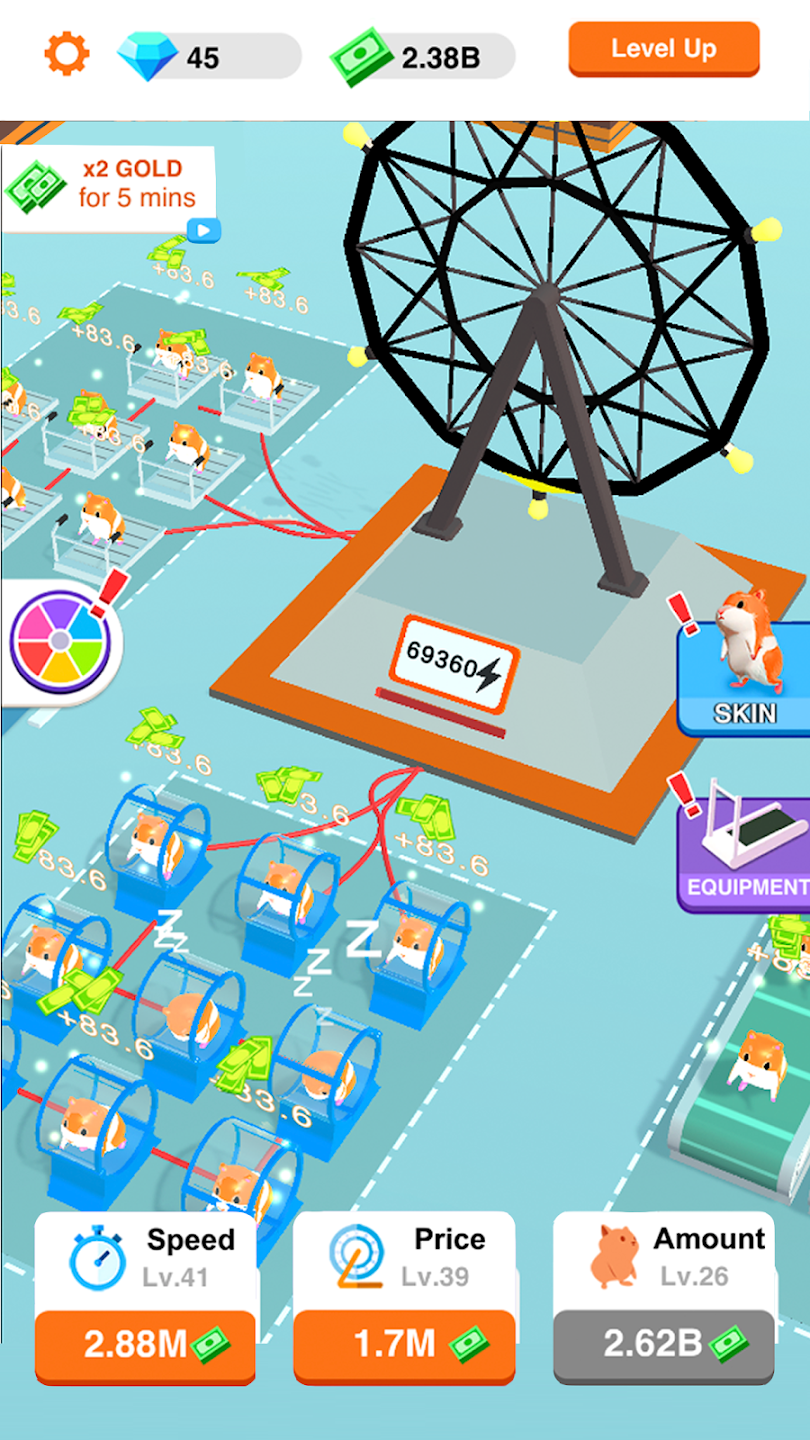 在这个空闲的点击和点击游戏中,您可以解锁并发现大量仓鼠和充电物品。 赚取现金、购买升级、更快地发电并扩展地图。