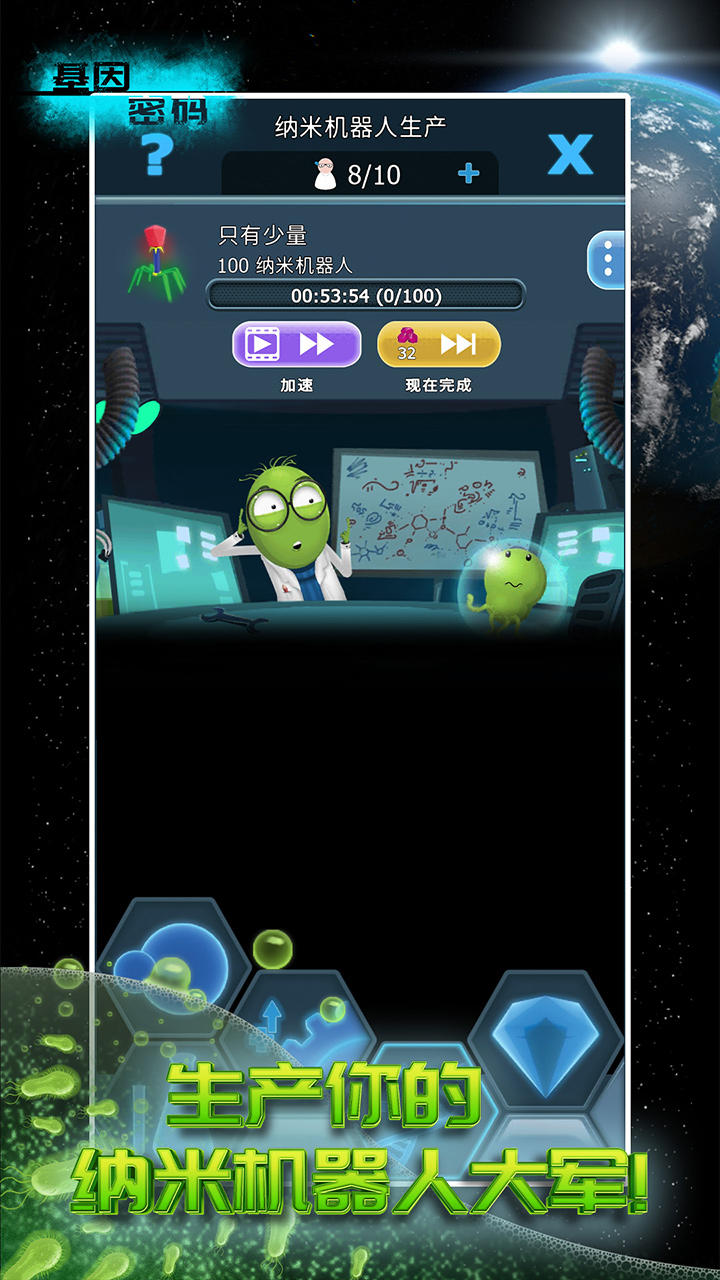 游戏将带你进行一次独特的微观宇宙之旅,助你成为微观世界的星际大亨。通过放置、生产和升级,认识和培养不同的细菌,挑战自我,优化细菌配置,尽可能多地占领微观行星!