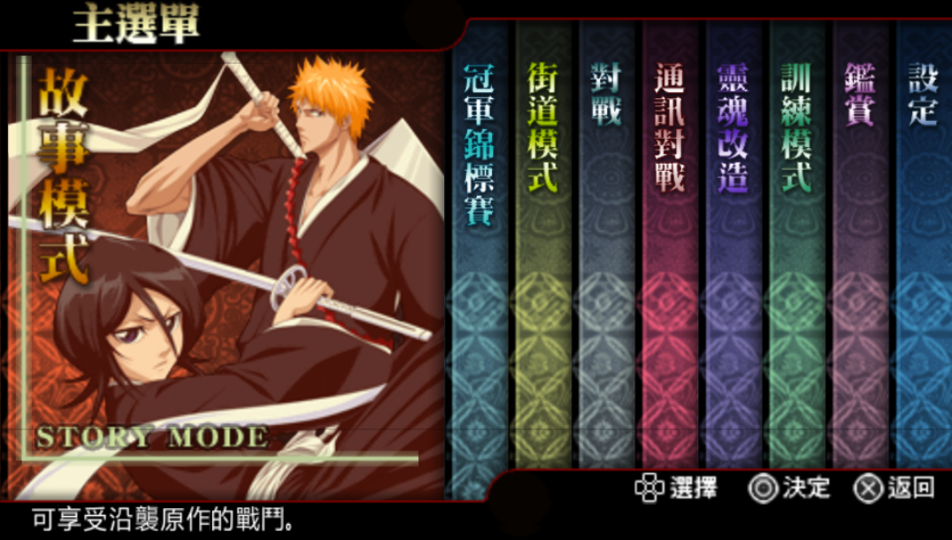 在故事模式部分,将完整收录自电视版动画第1季《死神代理篇》起到最新1季《空座町篇》剧情,