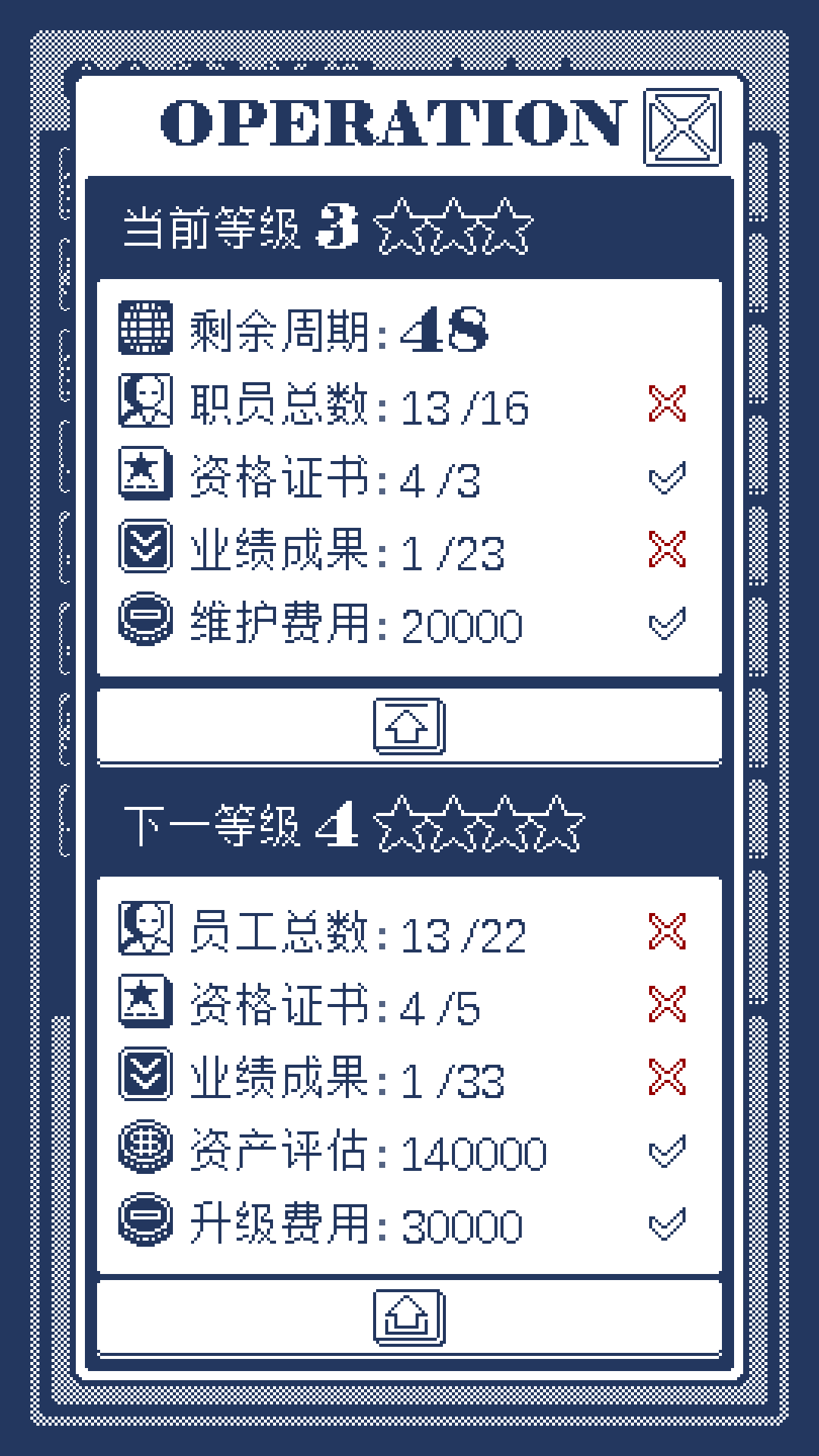 欢乐模式拥有新的通关条件:拥有特定的人数和资格证,并完成一项超大项目,即可通关;