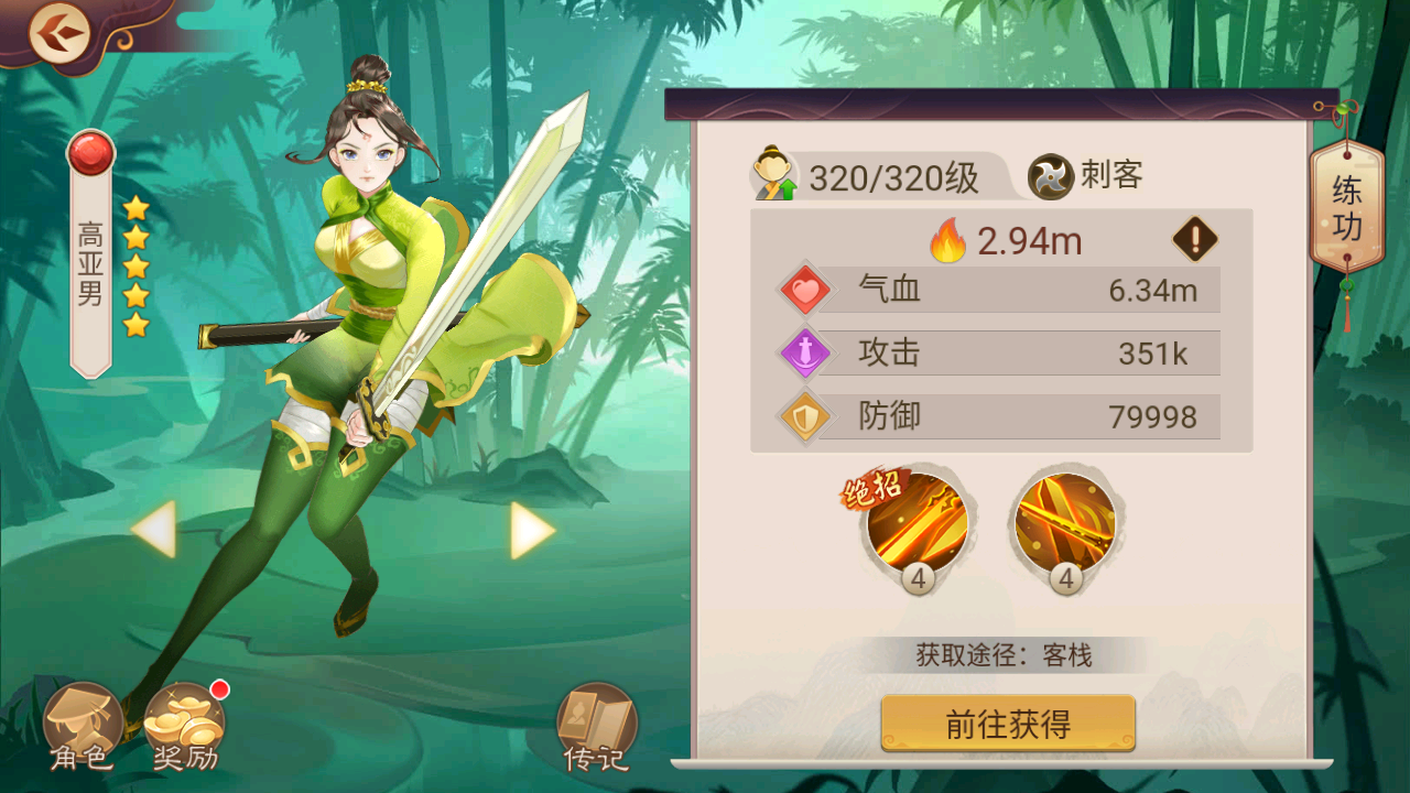 2、侠客突破系统调整:由升级侠客卡牌颜色改为提升侠客星级。