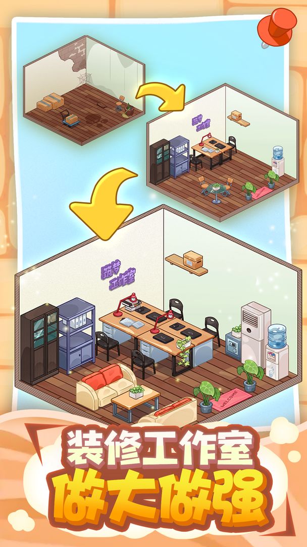 《筑梦工作室》是一款扮演“包工头”的模拟经营游戏,帮助顾客们打造自己梦想中的“家”。