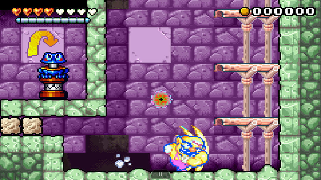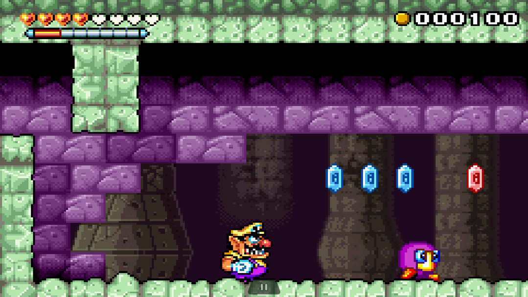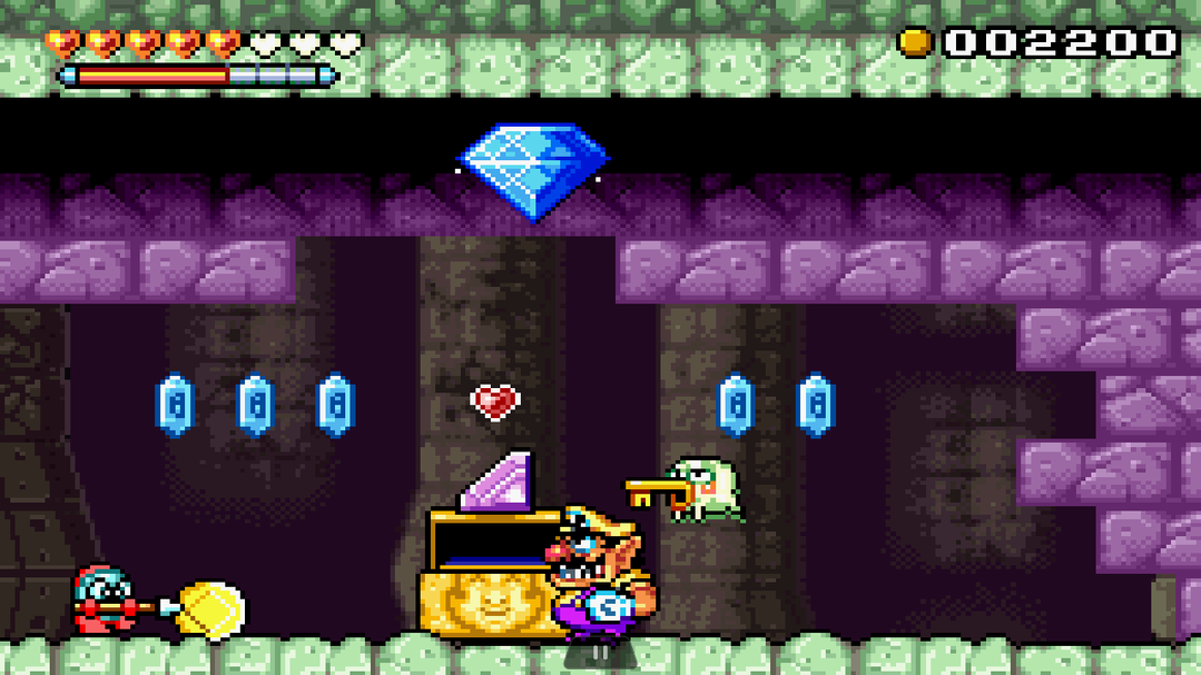 本作中瓦里奥终于有了HP的设定。游戏打过初始关以后出现4大关,每大关有4小关和一个BOSS,全部打过可以进入中央的金字塔去灭掉最终BOSS。