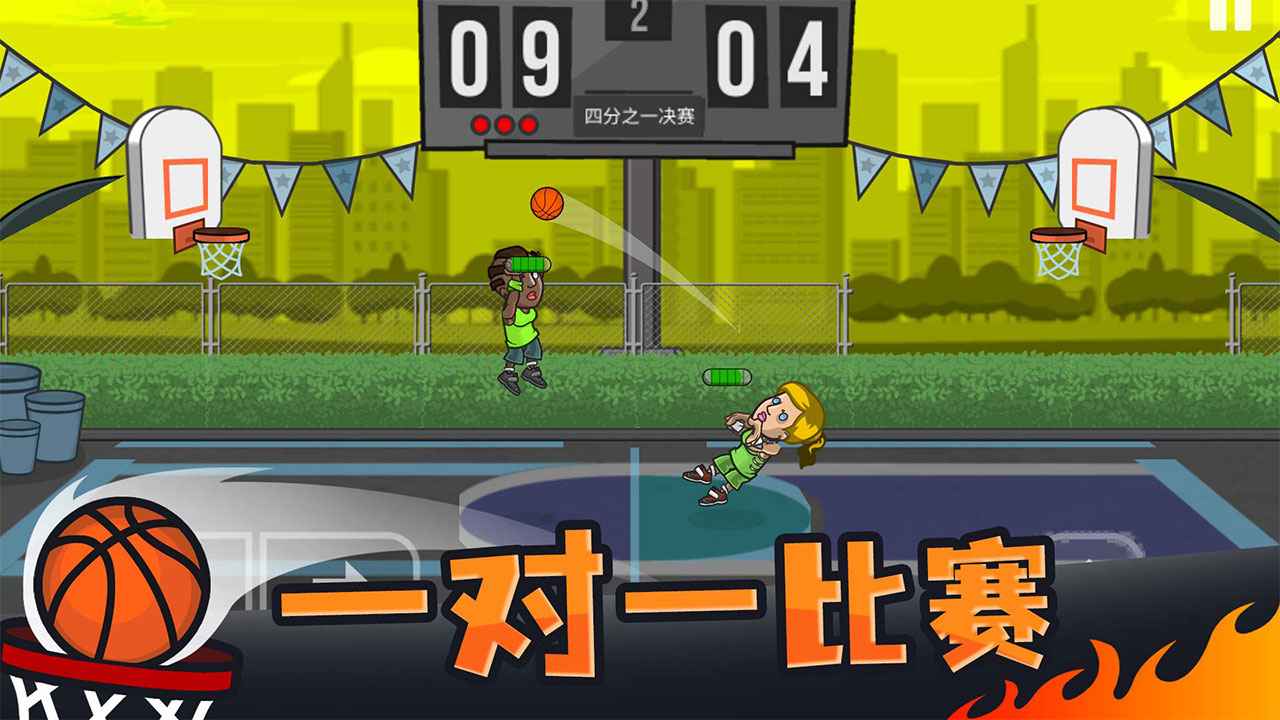 篮球对决是一款竞技体育游戏,游戏中玩家需要签约球员,创建自己的篮球队,不断参加锦标赛,获得世界冠军。所有比赛采用一对一的形式进行,每次只需上场一名球员,比赛分上下半场,首先获得11分的一方获得比赛胜利。签约能力强的队员会使胜利事半功倍,当然升级也可以大幅度提升球员的能力。