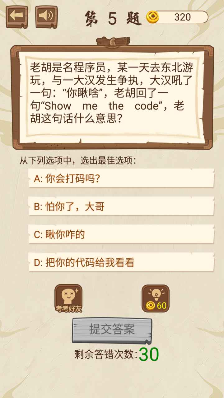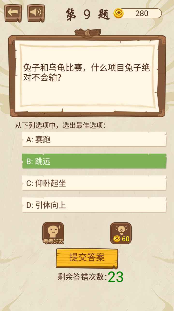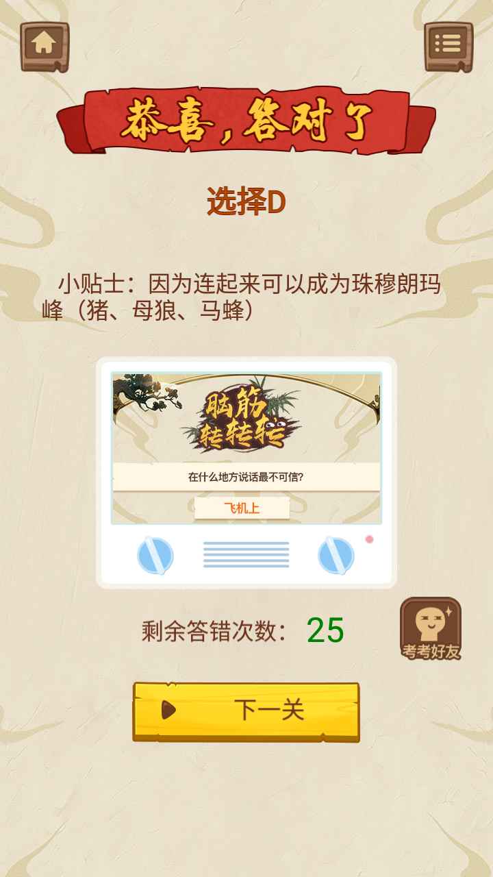 脑筋再不动,就要生锈啦,大家一起来动动脑呀!!!闲暇时间放松一下,脑洞大开,在知识的海洋里徜徉,跳出固定思维,打破常规,选出答案。不要小看这简简单单的答题游戏,你还不一定能回答出来呢,题目脑洞只有你想不到的,没有你遇不到的,赶紧来试试吧~~