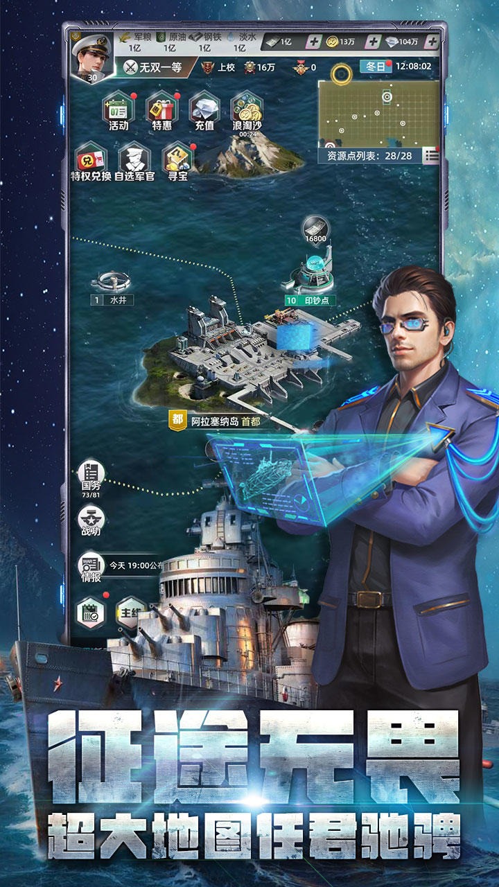 您将化身为一名司令官,招募最优秀的海军将领、打造最佳性能的战舰、组建最强的舰队!