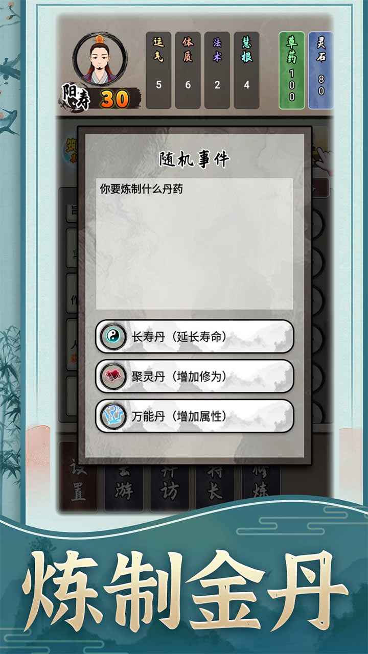 《修仙生活录》是一款以修仙题材为主的人生模拟器游戏。在游戏内有庞大的修真世界观。你不仅可以在游戏内修仙渡劫提高修为,还可以通过云游结识不同的道友、探险上古修仙者遗留下来的传奇神器、采药炼丹炼制出人人梦想的长生不老金丹,杀妖除魔为民除害。更多修仙世界的秘密和宝藏等待着你去探索!