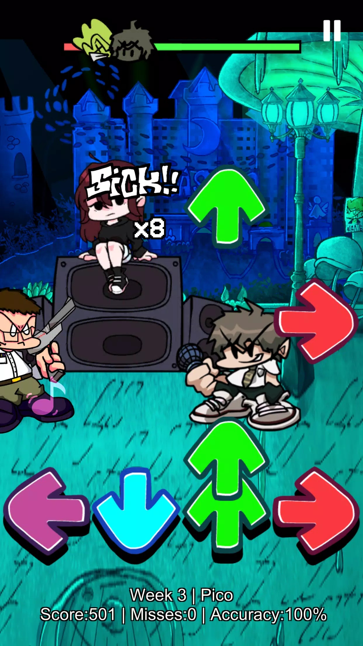 您只需要在它们完全匹配时点击箭头即可尽可能多地获得最高分。 感受 Funkin 的节奏! 与cg5共舞! 击败你所有的敌人(比如 whitty、shaggy、garcello、miku、hex、sky、ugh 和 savente)来证明你的才华。