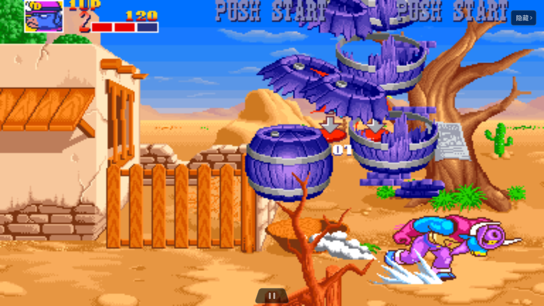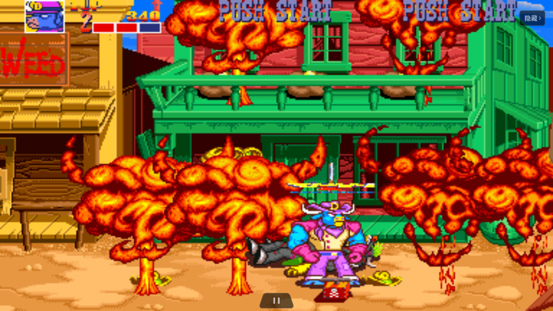KONAMI出品的一款横版射击类街机游戏,游戏的背景设置在美国中世纪西部,并以牛仔枪手为主题而展开。