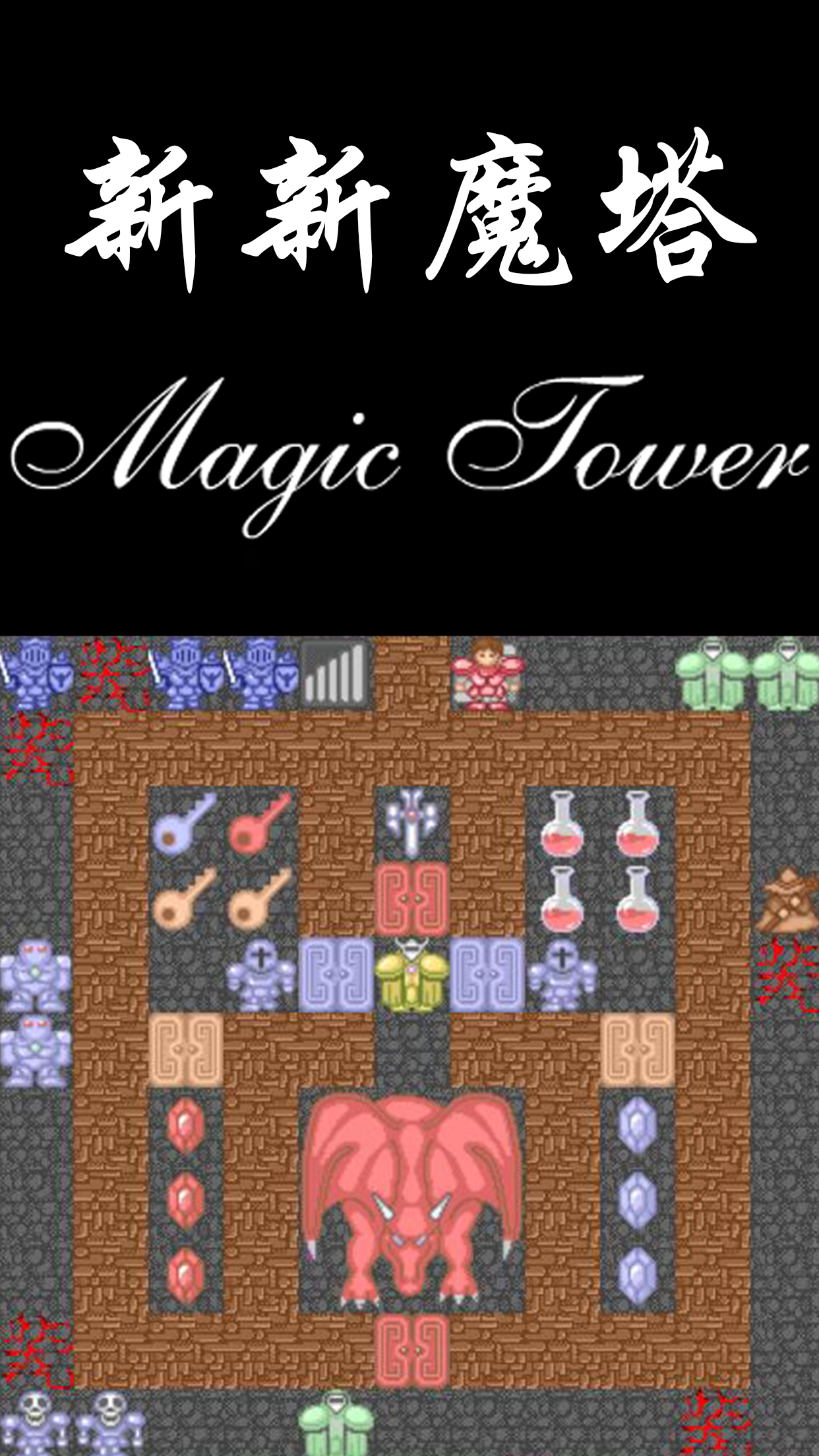 虽然魔塔的界面很像是一般的地牢游戏,貌似随便的打打杀杀就可以过关,但事实上玩这个游戏需要动很多脑筋,任何一个轻率的选择都可能导致游戏的失败,该游戏有属性攻击、防御、生命、金币、经验。对怪物的伤害次数计算公式,是敌人的生命/(自己的攻击-敌人的防御);而伤害的数目计算是怪物伤害次数(敌人的攻击-自己的防御)。
