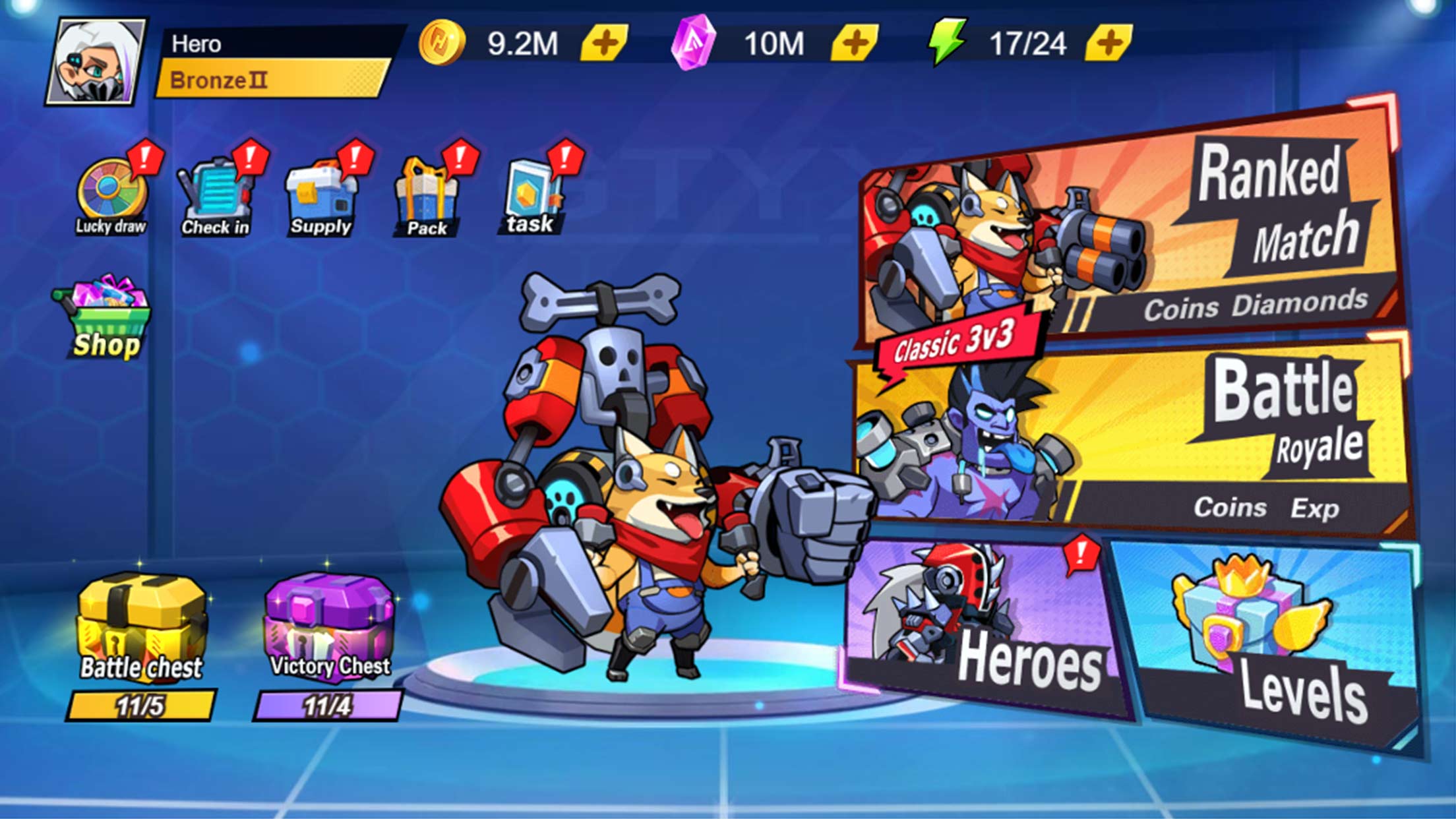 这是一款极具吸引力的机器人格斗游戏,玩家可以选择不同类型的英雄进行战斗,如卡通风格的英雄、真钢机甲机器人等等。