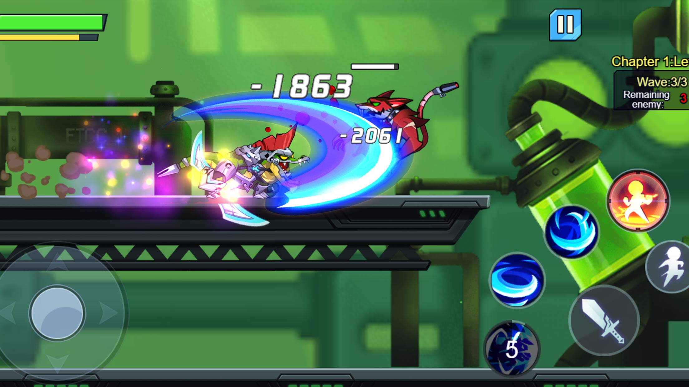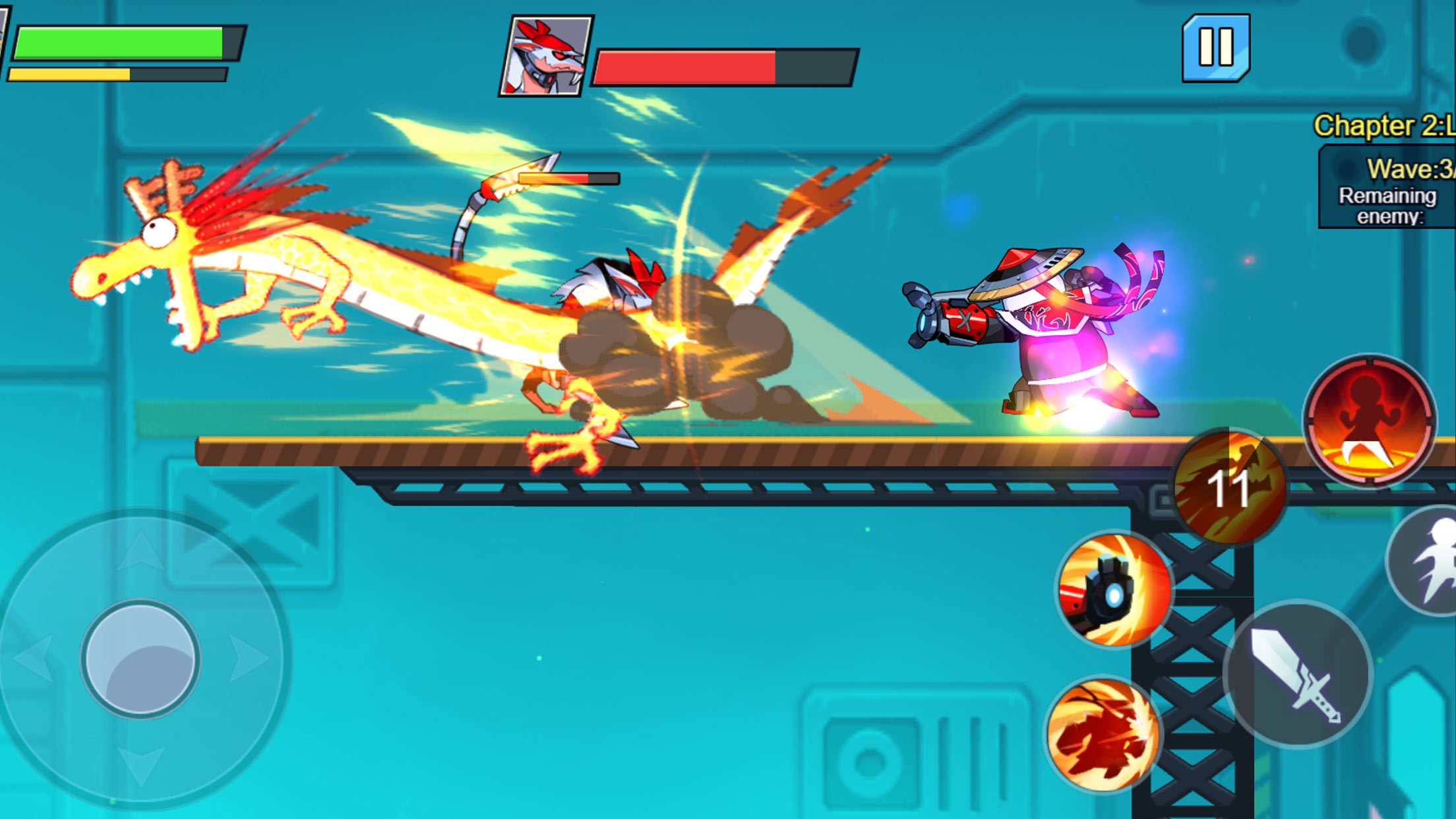 3.点击跳跃并消灭顶部的敌人。