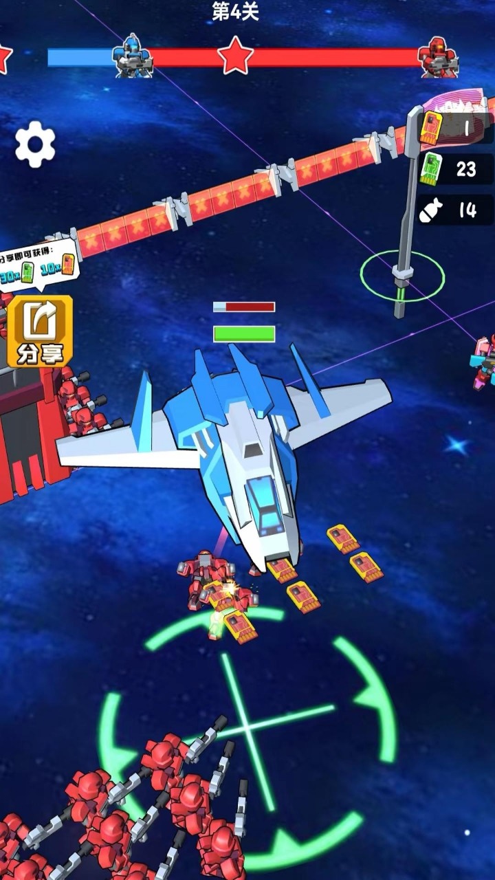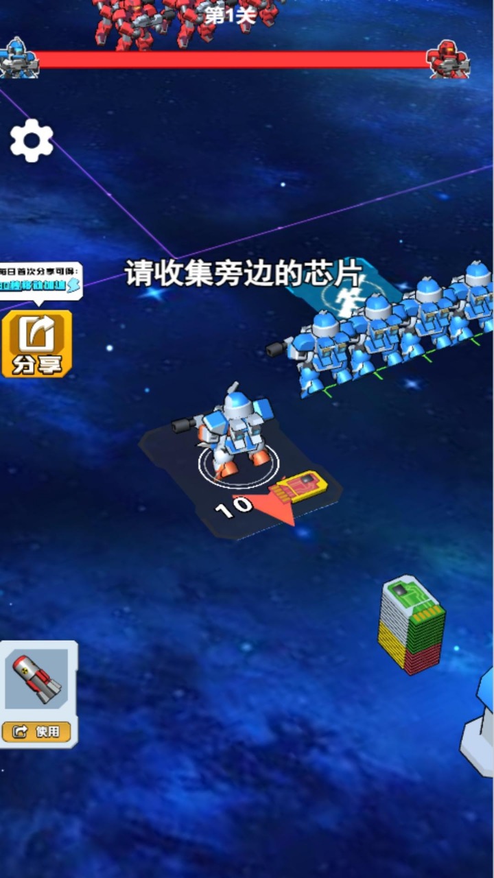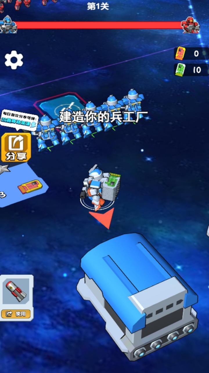 击败敌方夺取敌方旗帜,占领基地!收集芯片,建造兵工厂和枪械武器。集结军队向敌方发起进攻,收集敌方散落芯片升级。可以利用战斗机、核弹、空投武器或物资提升己方战斗力。