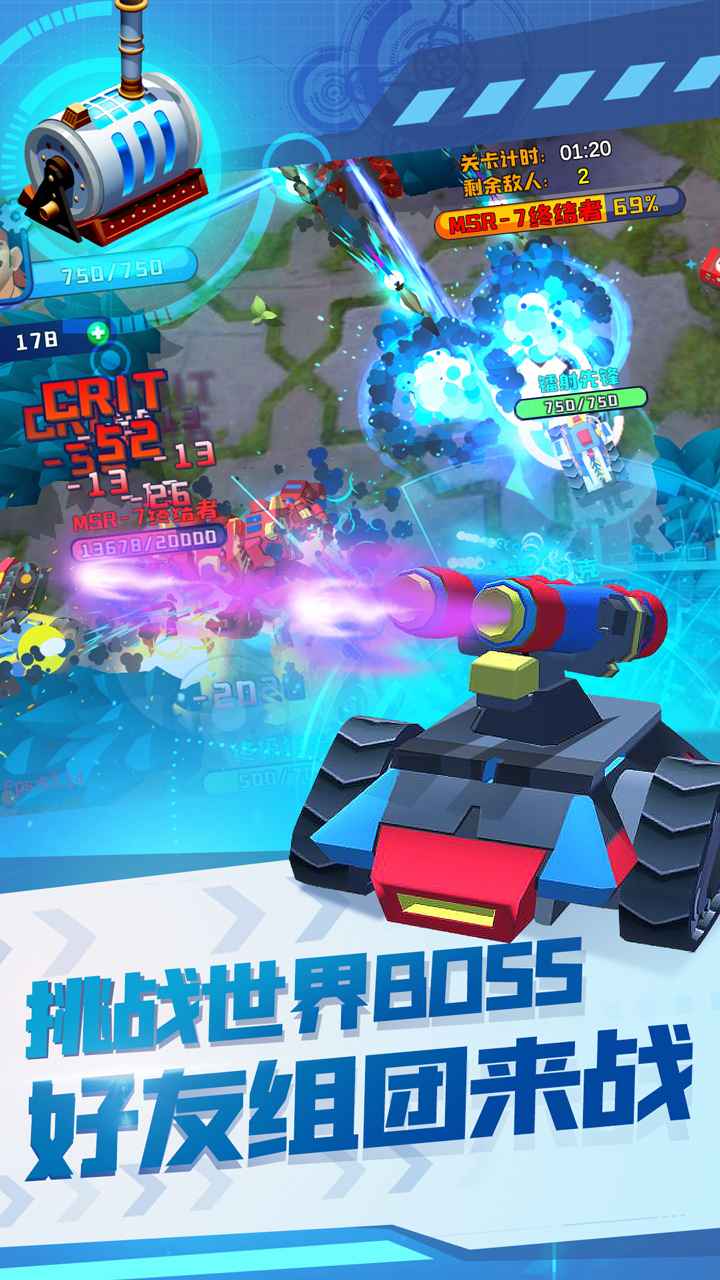 终极坦克是一款全新的3d一款轻度休闲竞技类坦克对战手游,游戏内玩家可操纵多种不同属性风格的坦克在不同战场或风景小镇中进行多种模式的战斗。游戏内设置了多种不同的竞技对抗玩法,每场战斗2~5分钟,玩家可在每场战斗中匹配3名队友随时随地开启一场刺激的炮火对战。也可以独自一人面对强敌。挑战自己的操作极限。快来配置自己的坦克开始一场场有趣的惊险的战斗吧!游戏特色收集和养成解锁、收集和装备标志性的古典和现代坦克,包括M1艾布拉姆斯、T-80U、挑战者以及更多!赚取游戏币以摧毁高级目标,并用新的铠甲、枪械和弹药升级您的坦克,以确保战场上的胜利永远属于您!3v3团队竞技在新挑战模式中挑战其他玩家-通过交战击败对手获得胜利,成为全新多人游戏模式的冠军!、坦克对机甲大战在炮声不断的战场上,使用平滑的控制系统与外星科技机甲奋战到底,瞄准、射击并摧毁敌人!守护人类家园!战斗铺开三场大规模的战役中将战斗延展至最前沿:在炙热炎炎的北非沙漠中杀出血路,在连绵起伏的欧洲绿野中强势穿越,以及在冰冷刺骨的西伯利亚冻原保持您的冷酷。