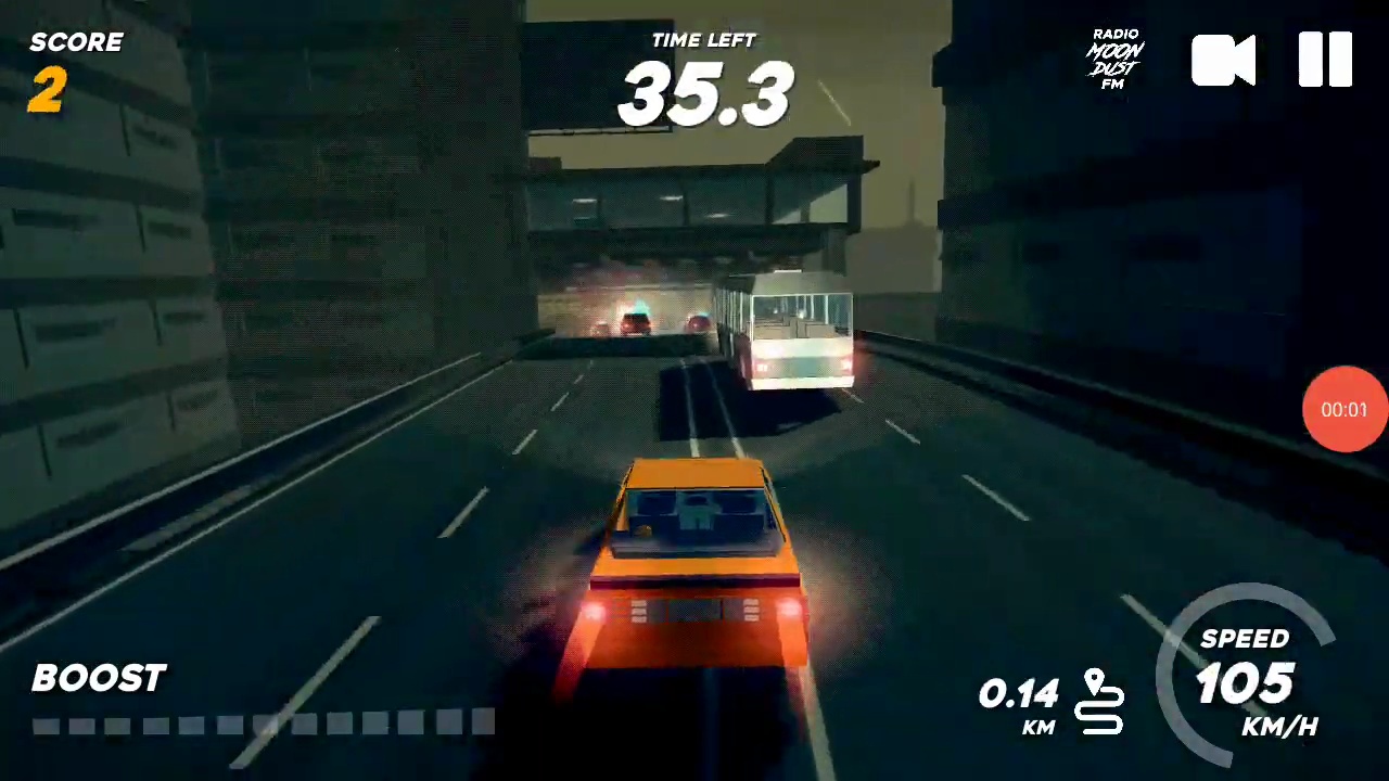 驾车穿越无尽的高速公路,躲避障碍物,并通过在交通中进行险些超车来收集助推力!