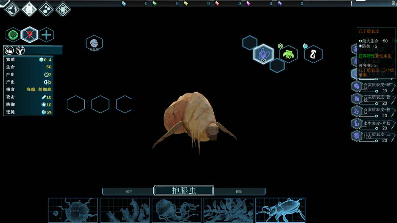 在设计飞船时,专门规划了一间生物实验室。你可以通过基因技术,在飞船上创造培养出能够改造未知环境的生物,帮助我们布局移民计划。但请记住,没有一种物种能单独生存下来,这是亘古不变的规律。为此你可能还需要打造一套生态系统,稳定生物的数量。但人类的基因技术已经停滞了很久,你可能需要自己度过难关。或许把这些母星上仅存的小生灵,投放到迥异的环境中进行培养,可以产生一些希望的火光。