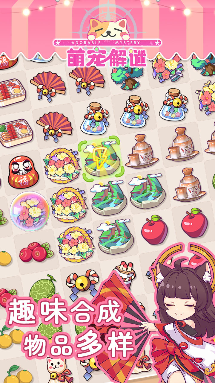 本游戏是一款画风清新可爱的合成冒险养成游戏。游戏背景是在恶魔出没的祈灵大陆,神主召唤守护神们一同守护大陆的安宁。玩家将扮演神主大人,通过合成玩法收集道具,解锁神灵们一起探索未知的大陆,解决各种千奇百怪的奇幻事件。