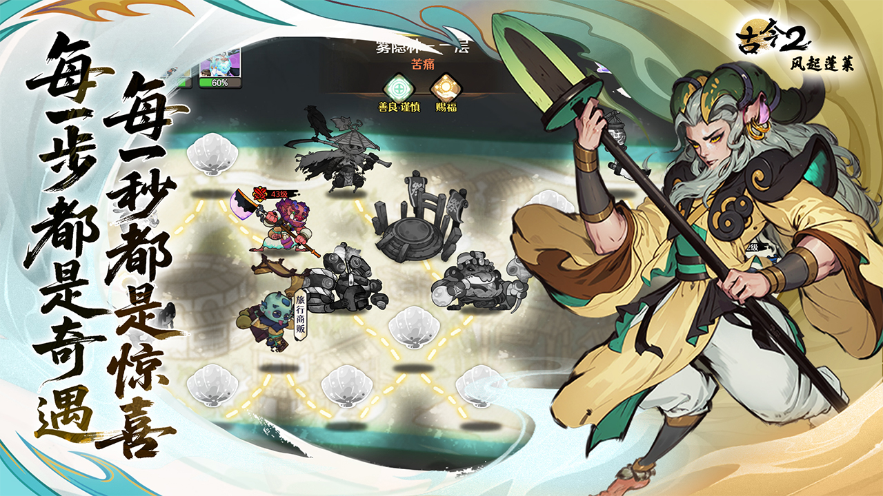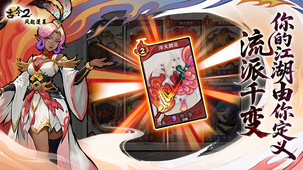 《古今2-风起蓬莱》是一款国风卡牌构筑游戏。玩家将扮演一名身世特殊的少年,游历四方,习得百种武学,收集神兵利器,结识天下武侠,终成为一代大侠。【特色玩法】