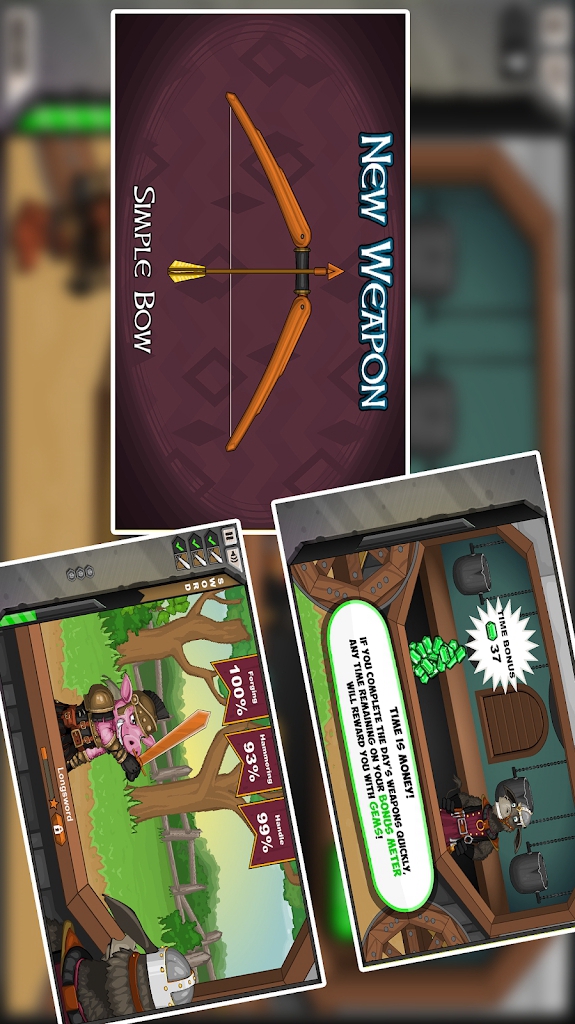 我来教大家怎么玩,老爹的店系列玩过吧,这个也是同一个系列的 1上报敌怪.2接收顾客武器订单.3选择矿石.烧成矿水.慢慢倒入模具.4安装配件.5上交订单。之后关卡会解锁左方炮弹,新的模具和新的武器