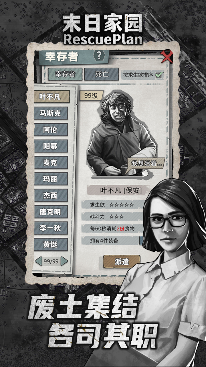 合理派遣 -- 每个幸存者都有优缺点,如果能合理地把他们安排到合适的岗位上,那将会大大提高营地社区的工作效率和安全性。